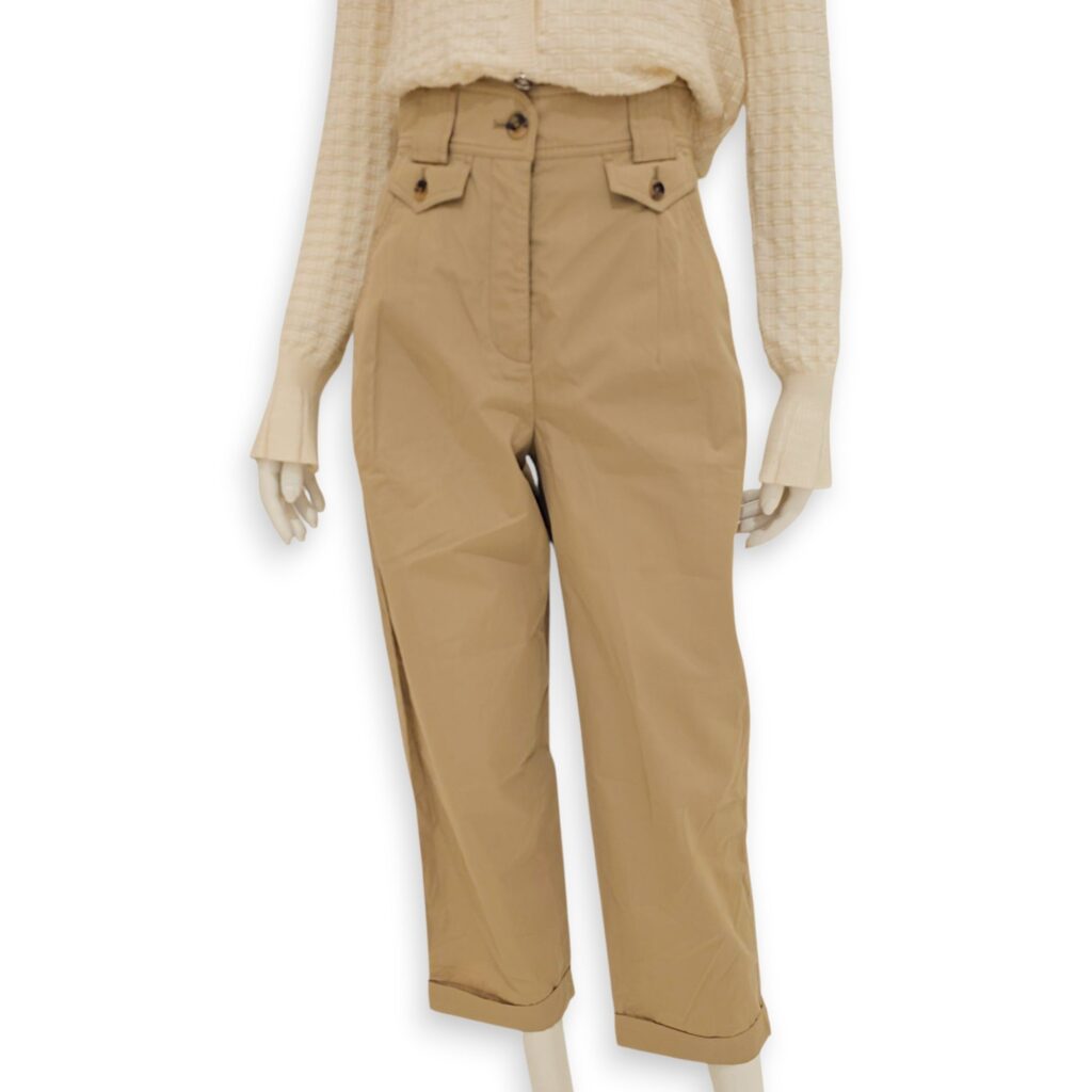 Pleated Cuffed Trousers 34 Light Brown Ready-To-Wear in Cotton