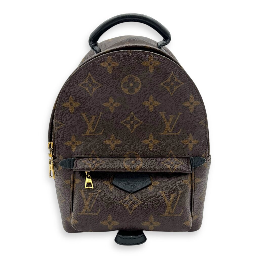 Palm Springs Backpack Mini Brown in Monogram Coated Canvas, Gold hardware