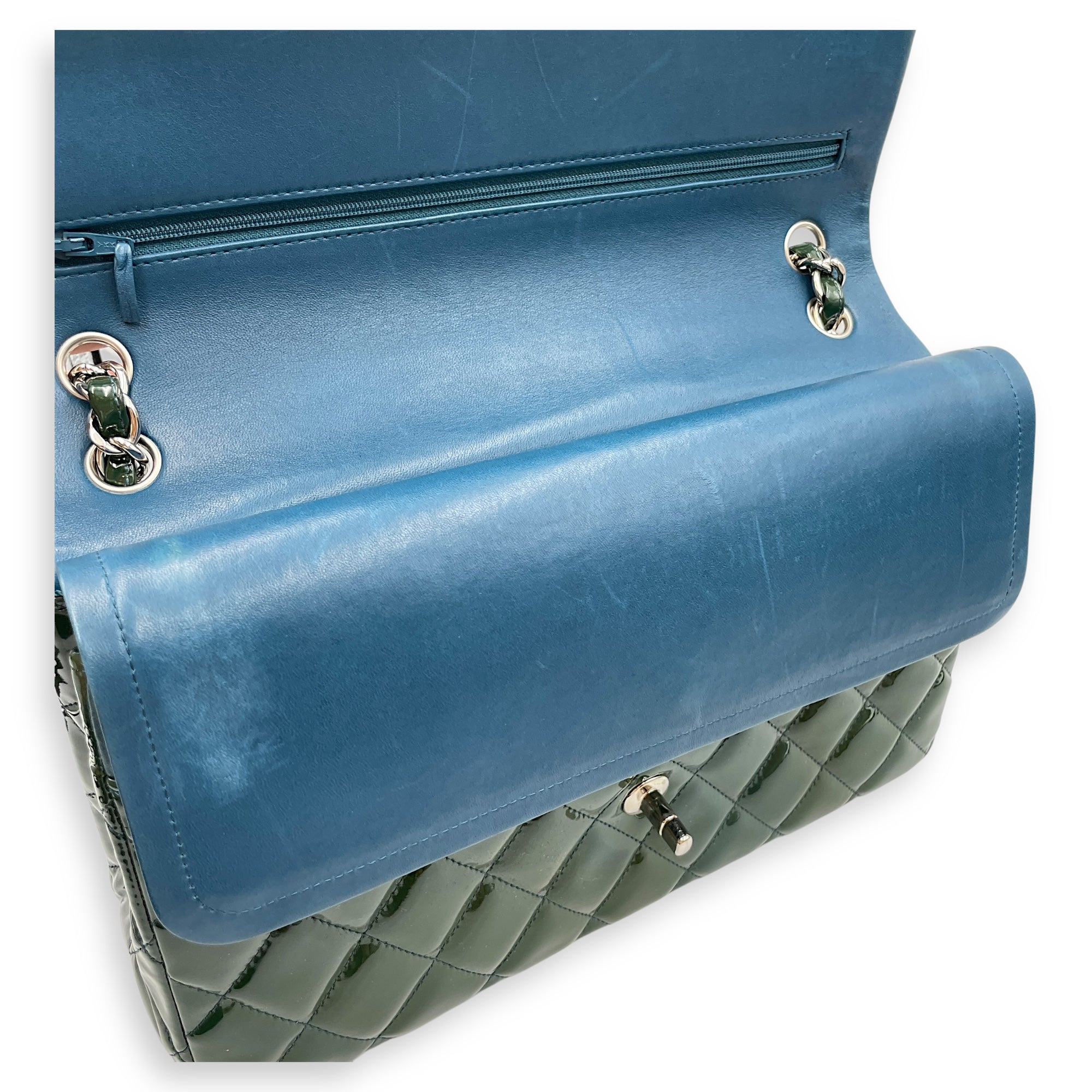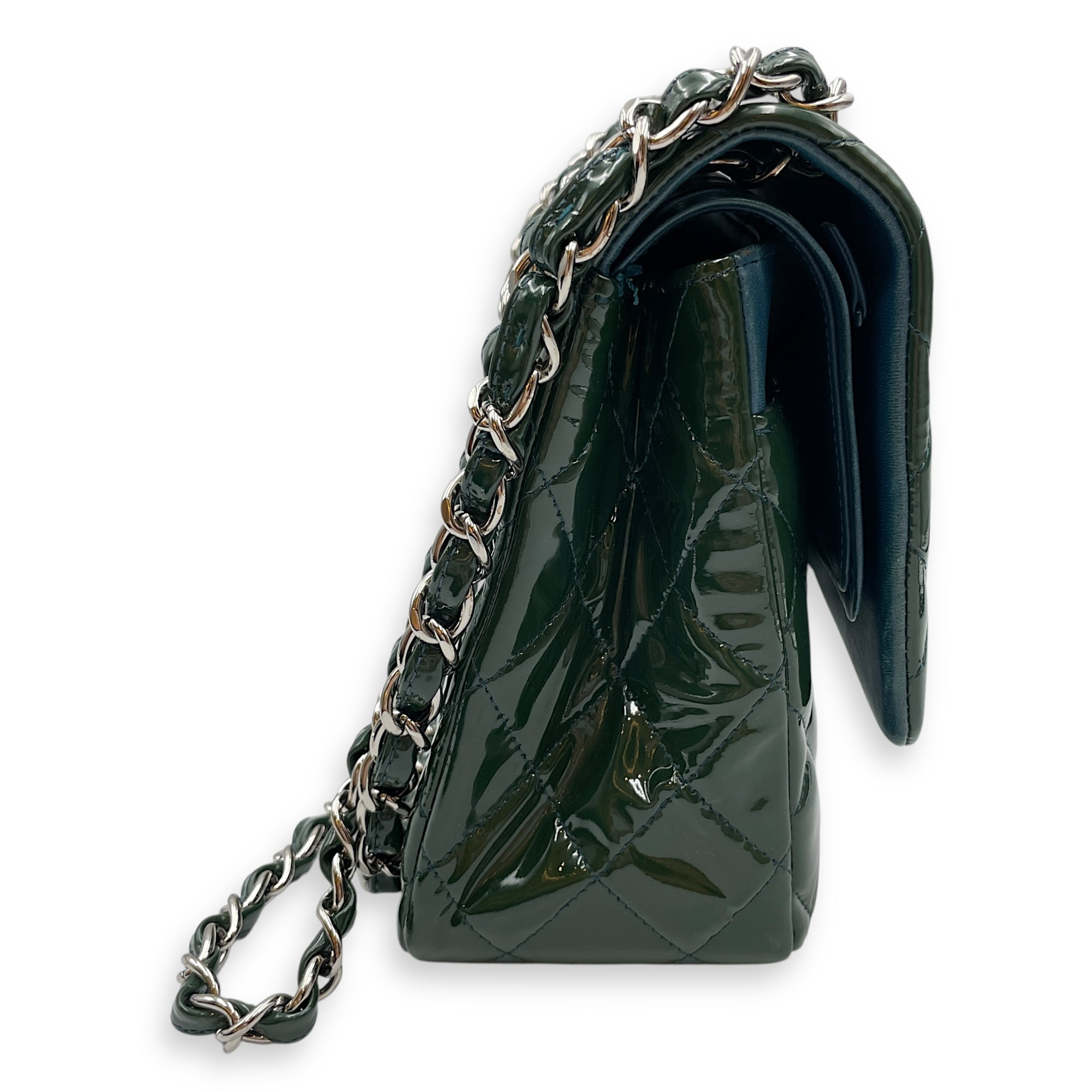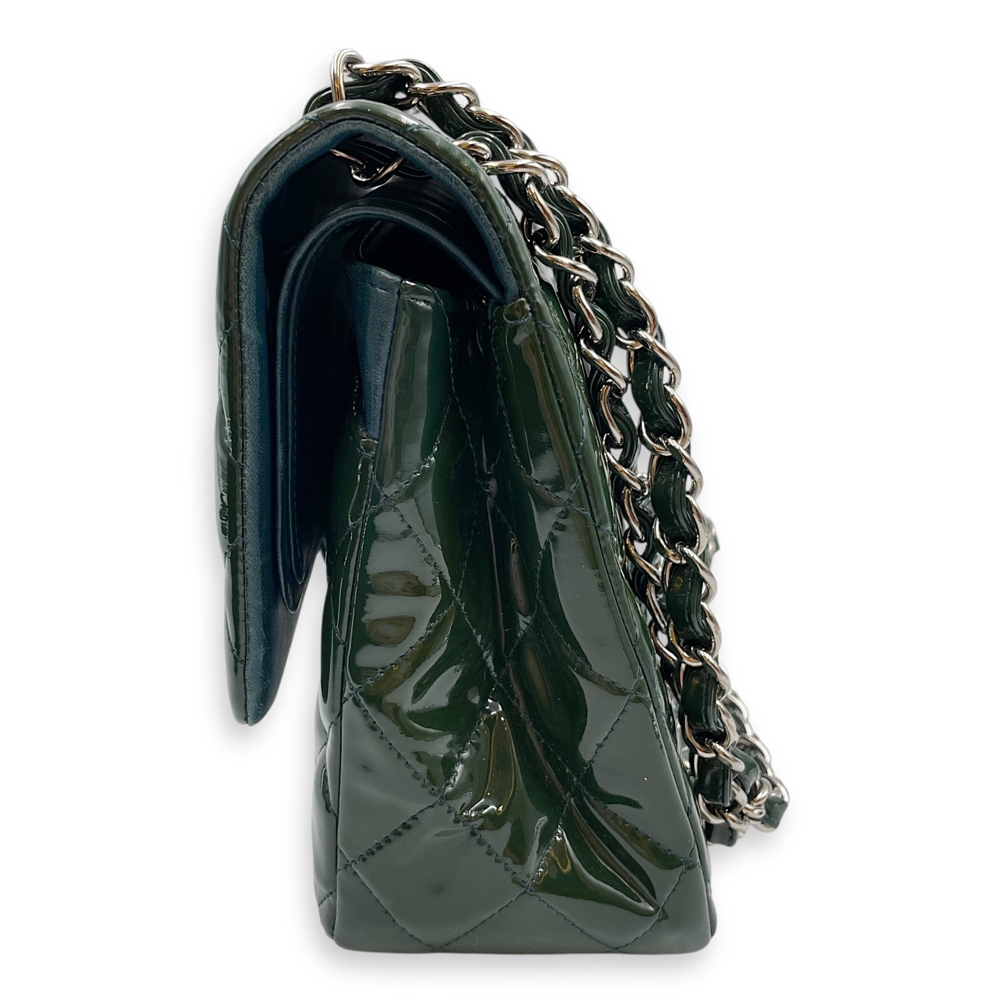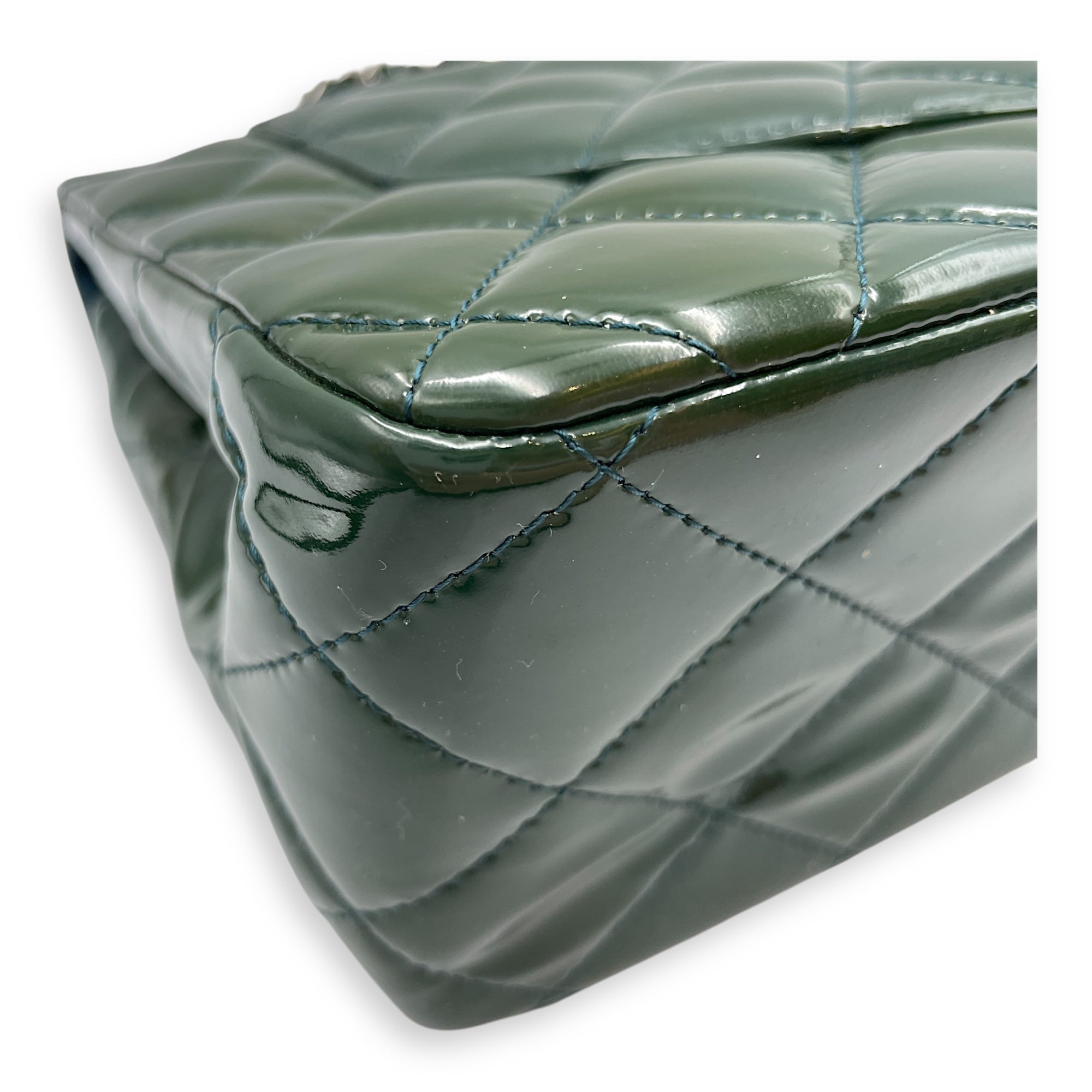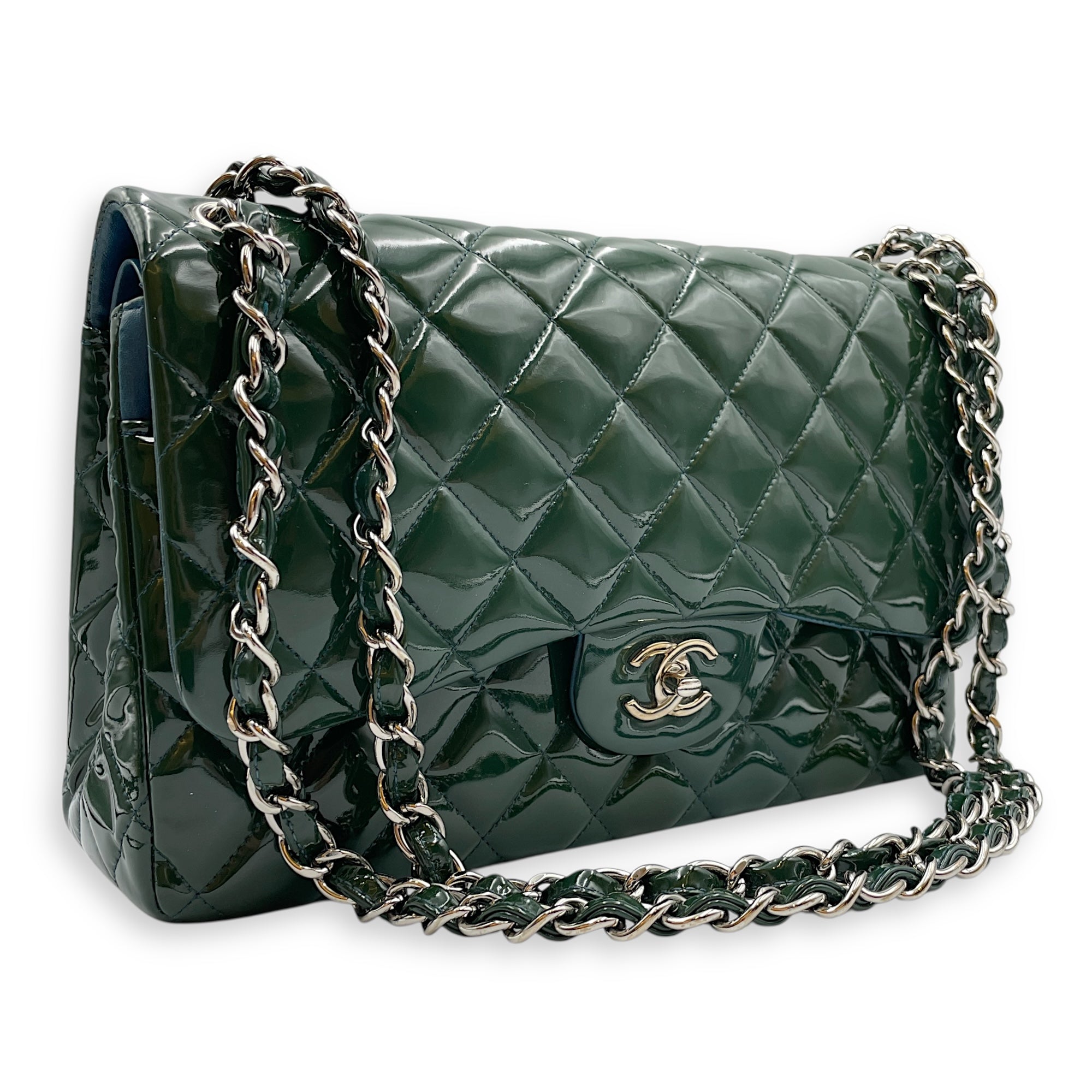 Be the first to review “Classic Double Flap Jumbo Green Shoulder Bag in Patent Leather, Silver hardware”