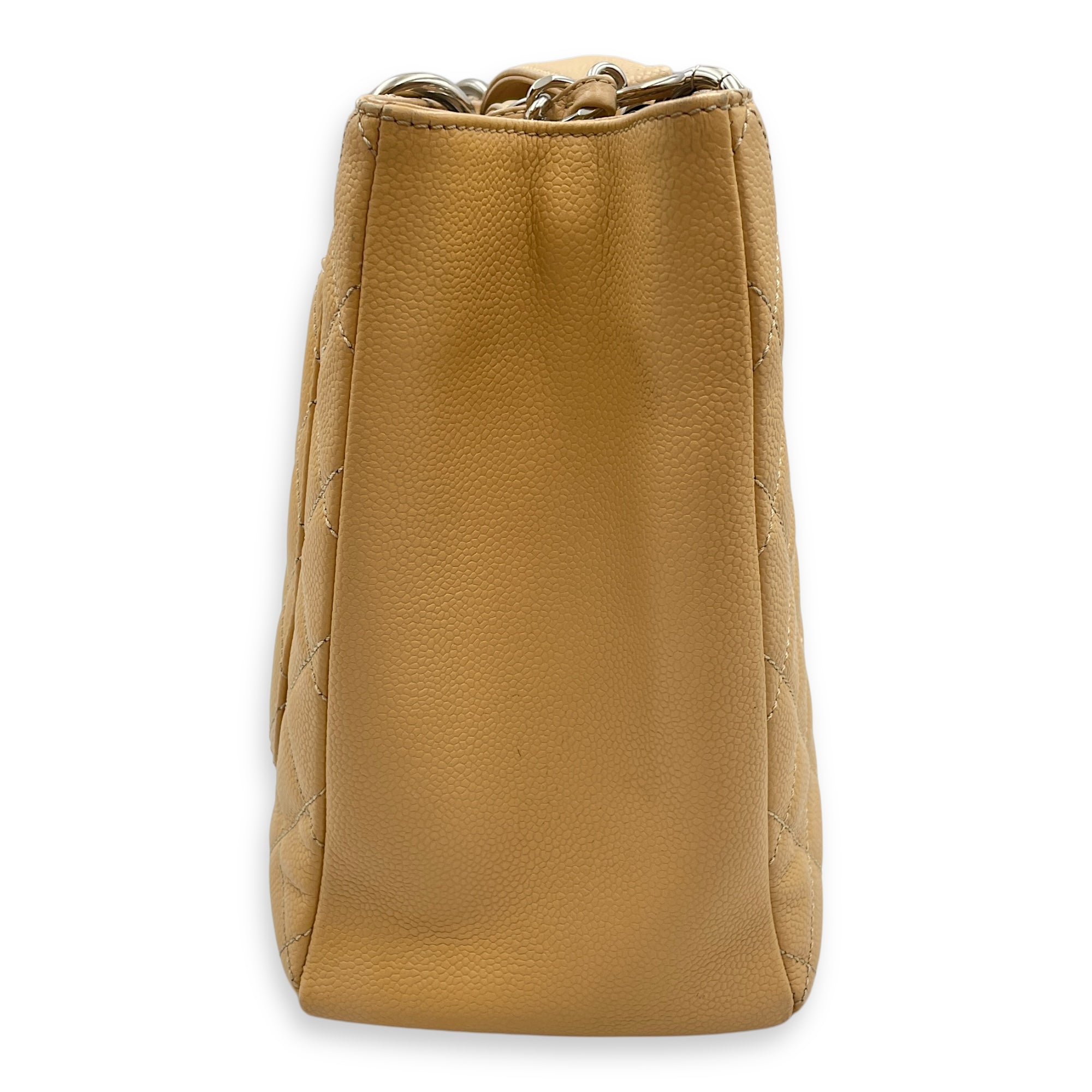GST Beige Shoulder Bag in Caviar Leather, Silver hardware