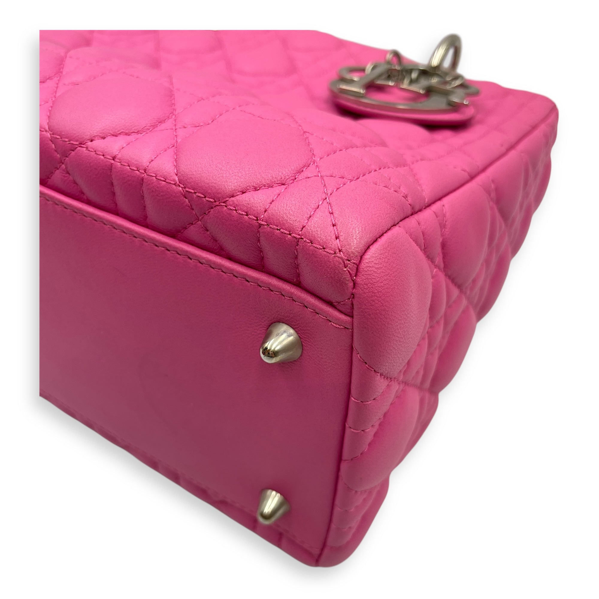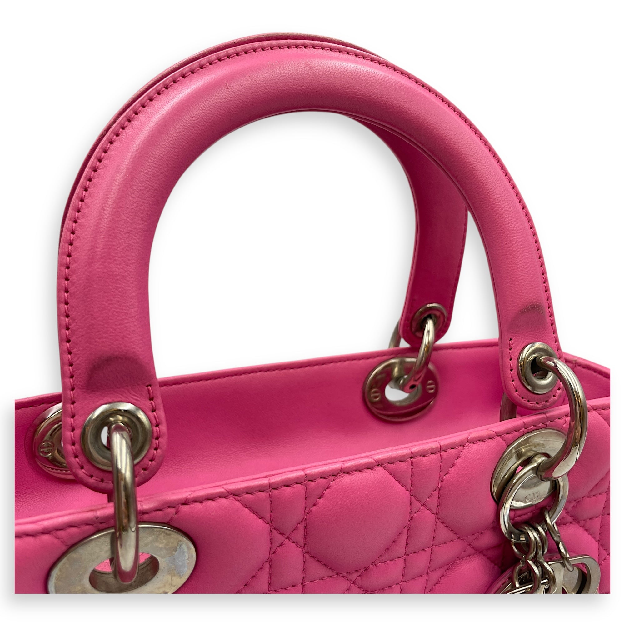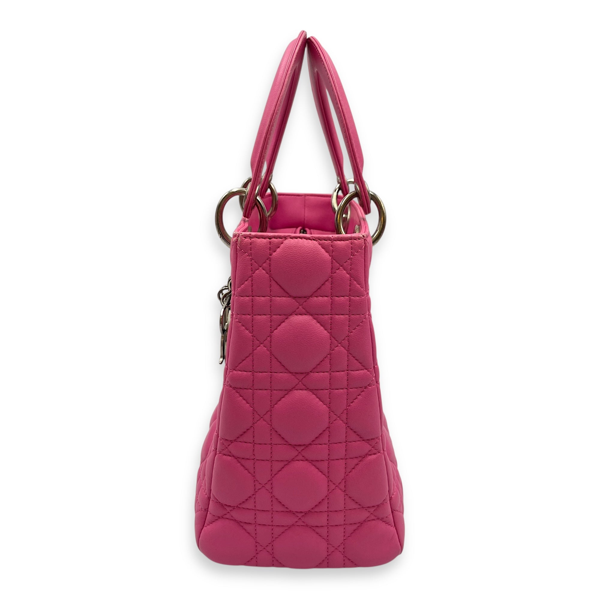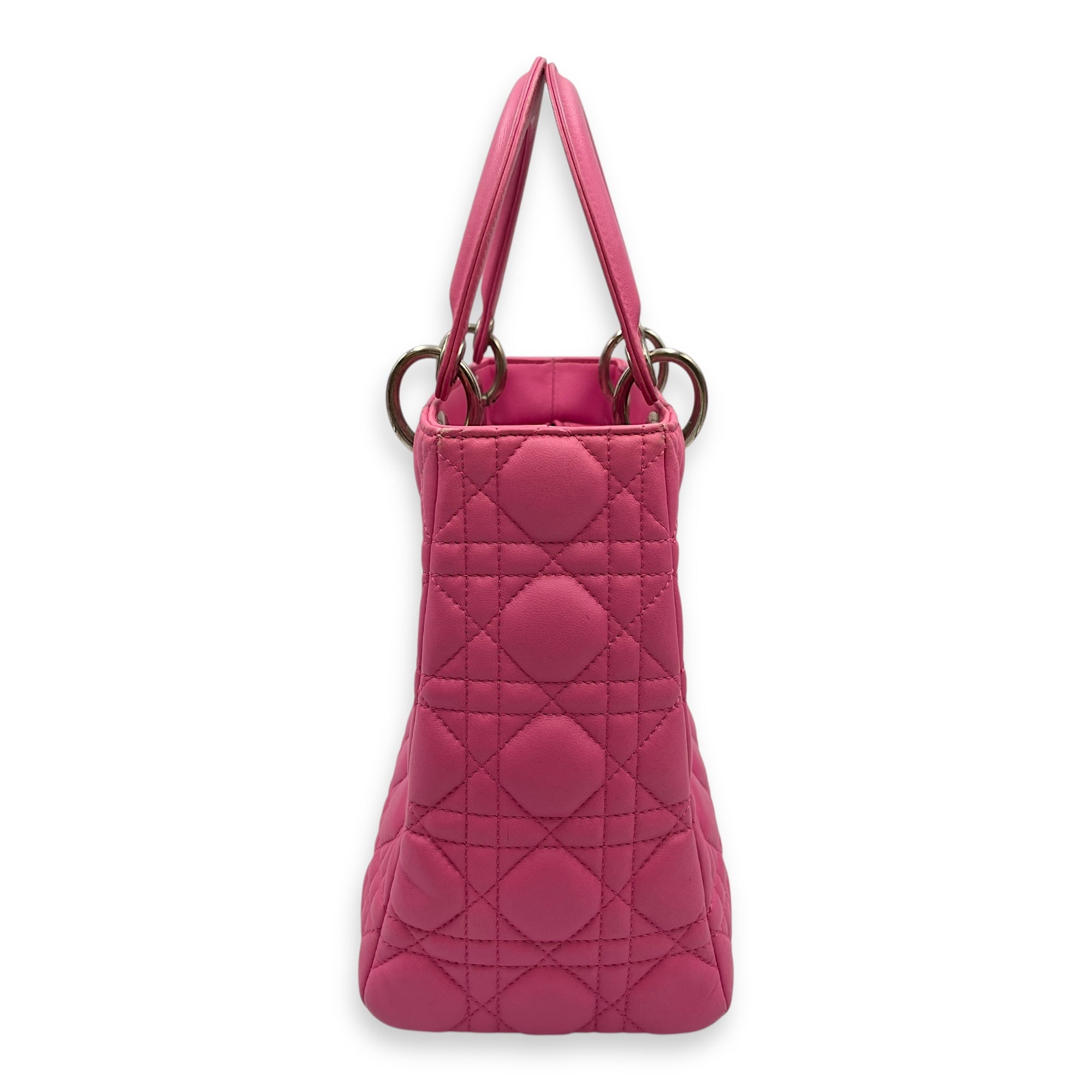 Lady Dior Medium Barbie Pink Top Handle Bag in Lambskin, Silver hardware