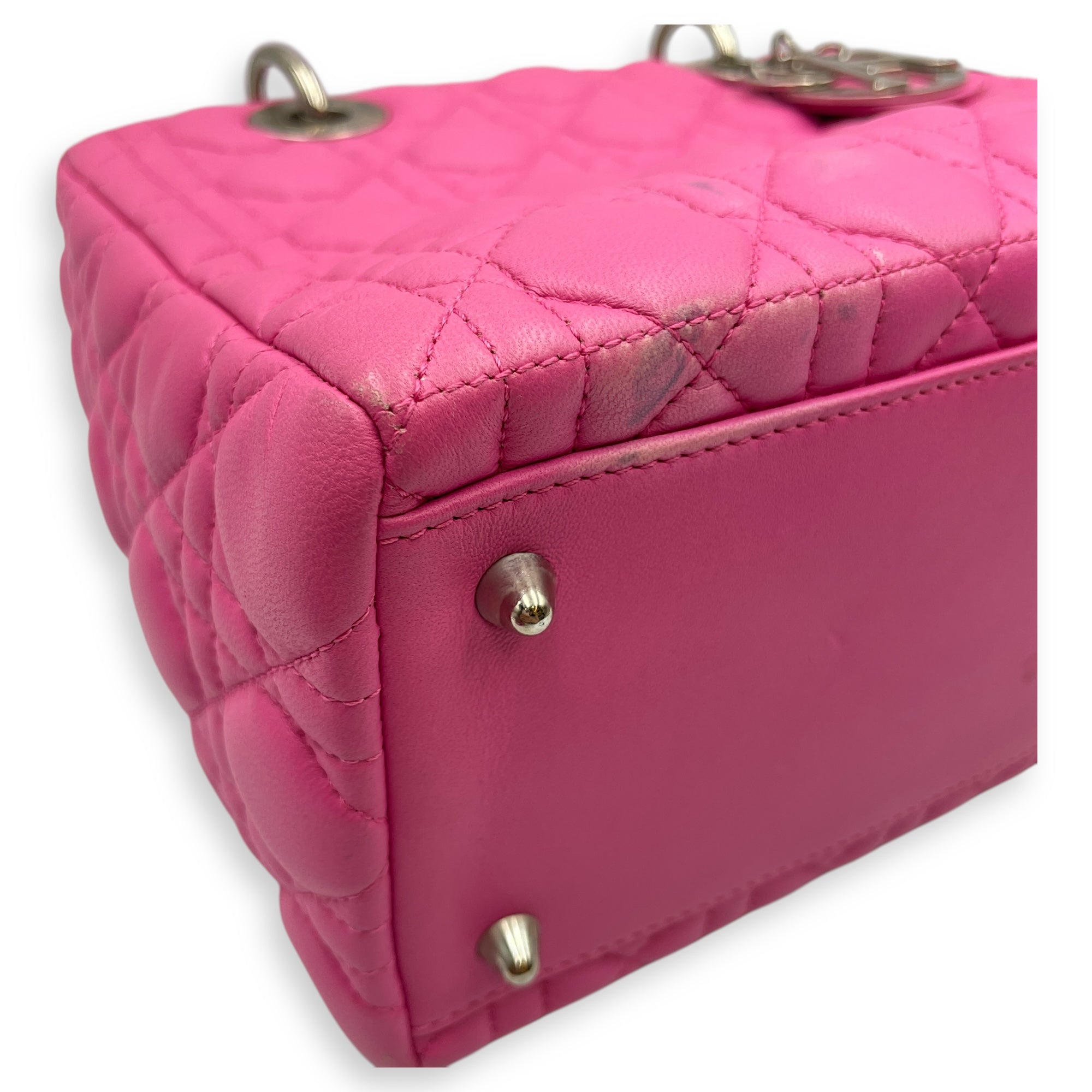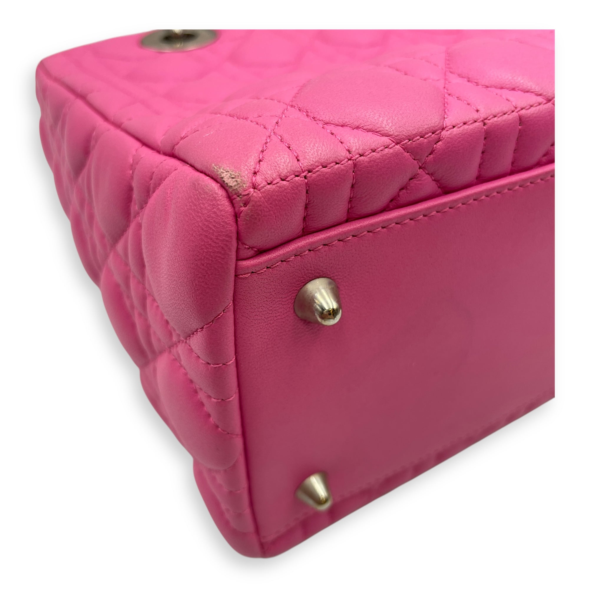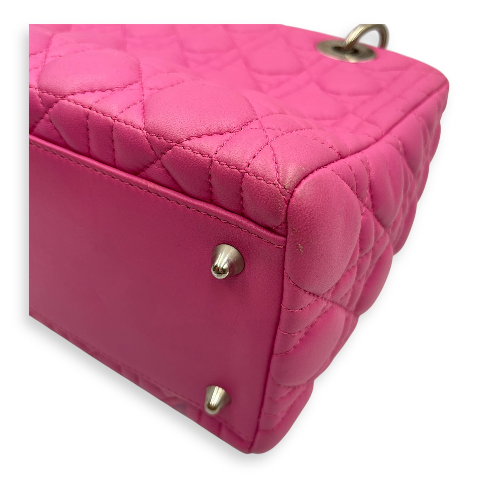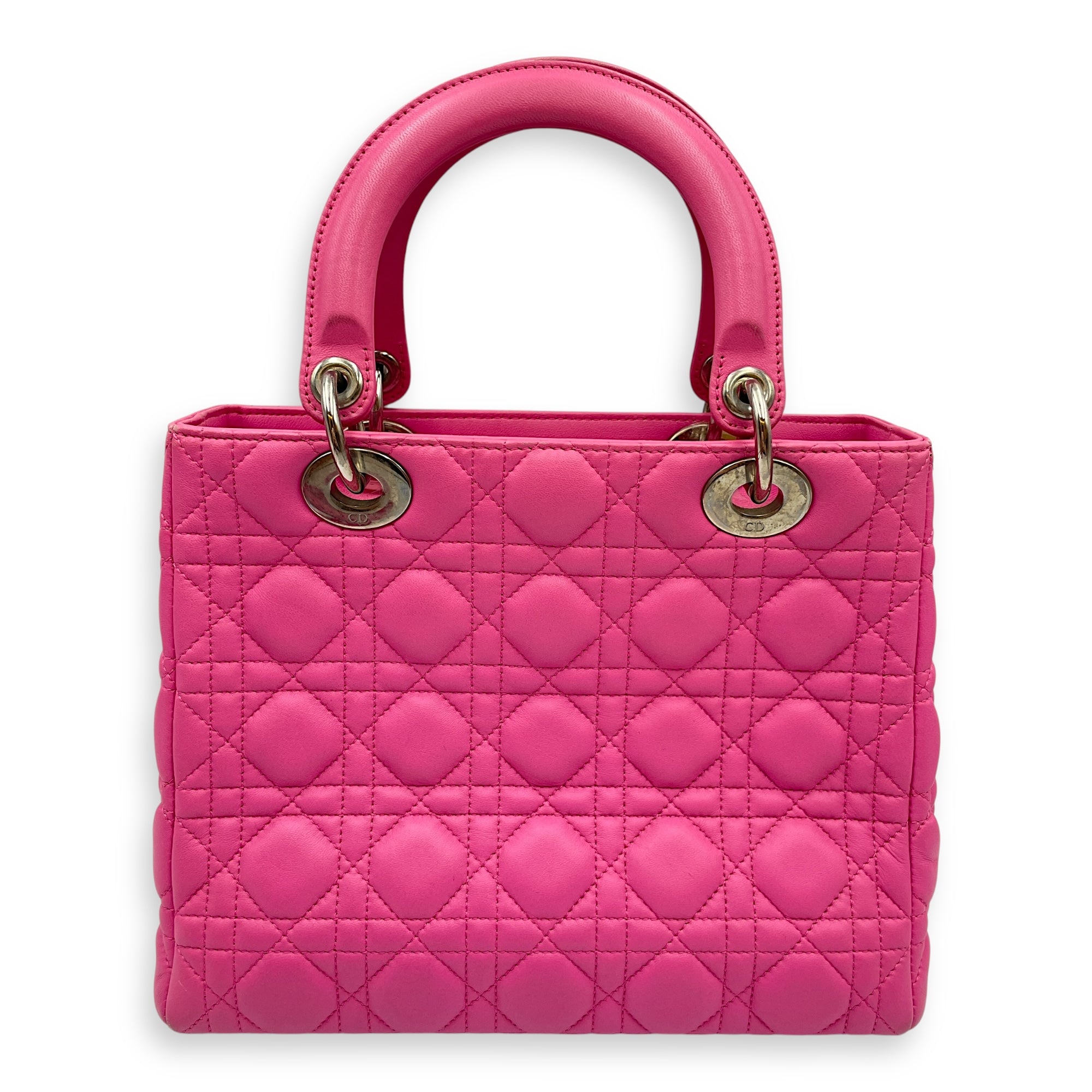 Lady Dior Medium Barbie Pink Top Handle Bag in Lambskin, Silver hardware