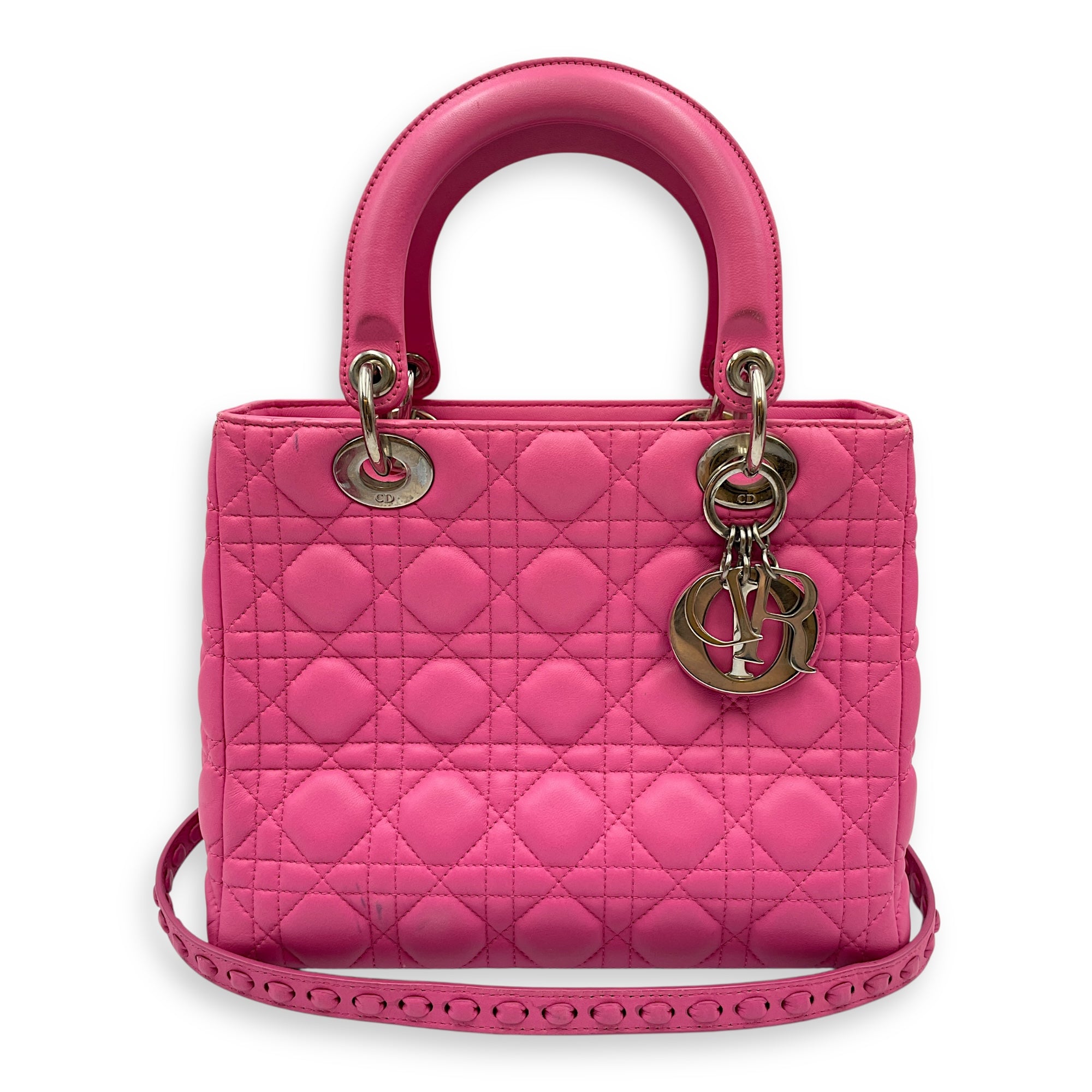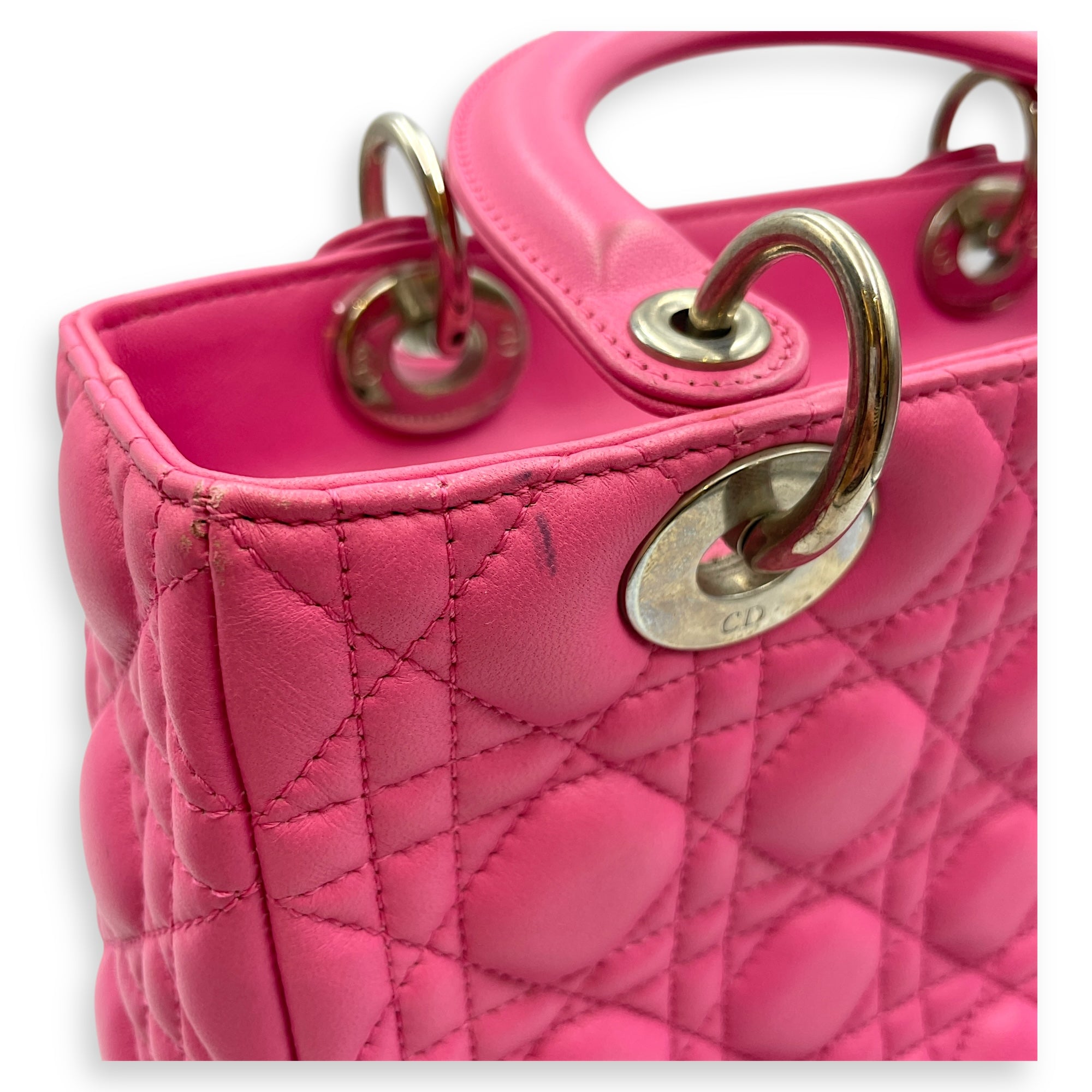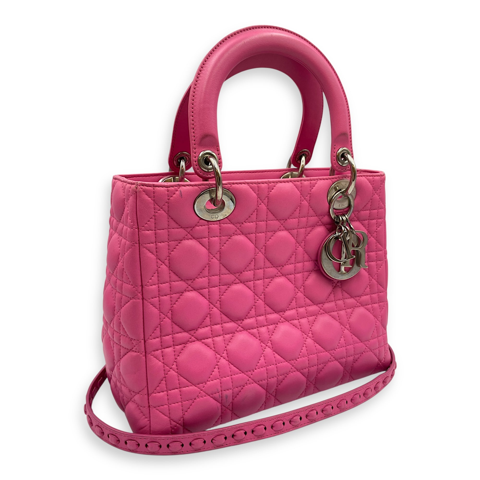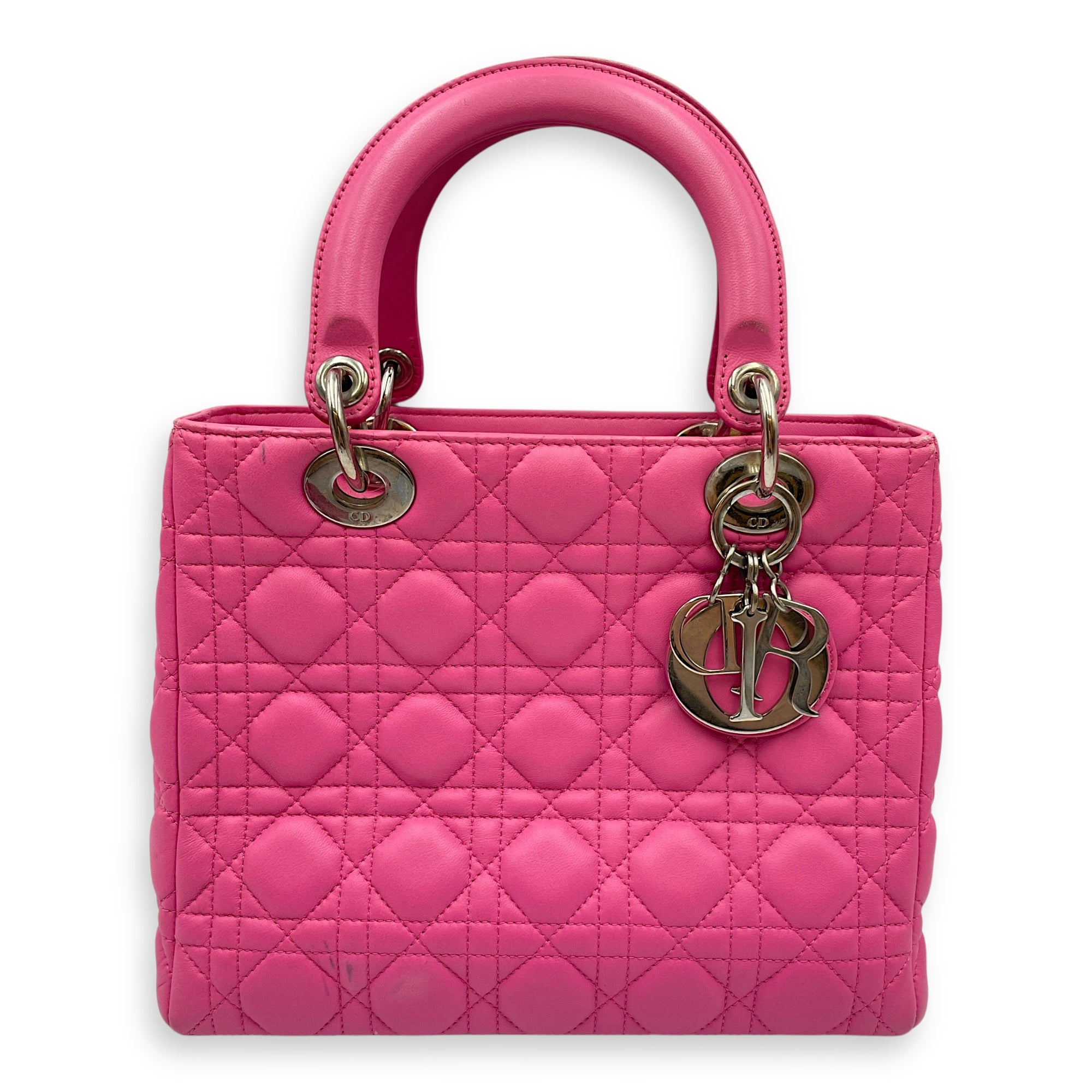 Be the first to review “Lady Dior Medium Barbie Pink Top Handle Bag in Lambskin, Silver hardware”