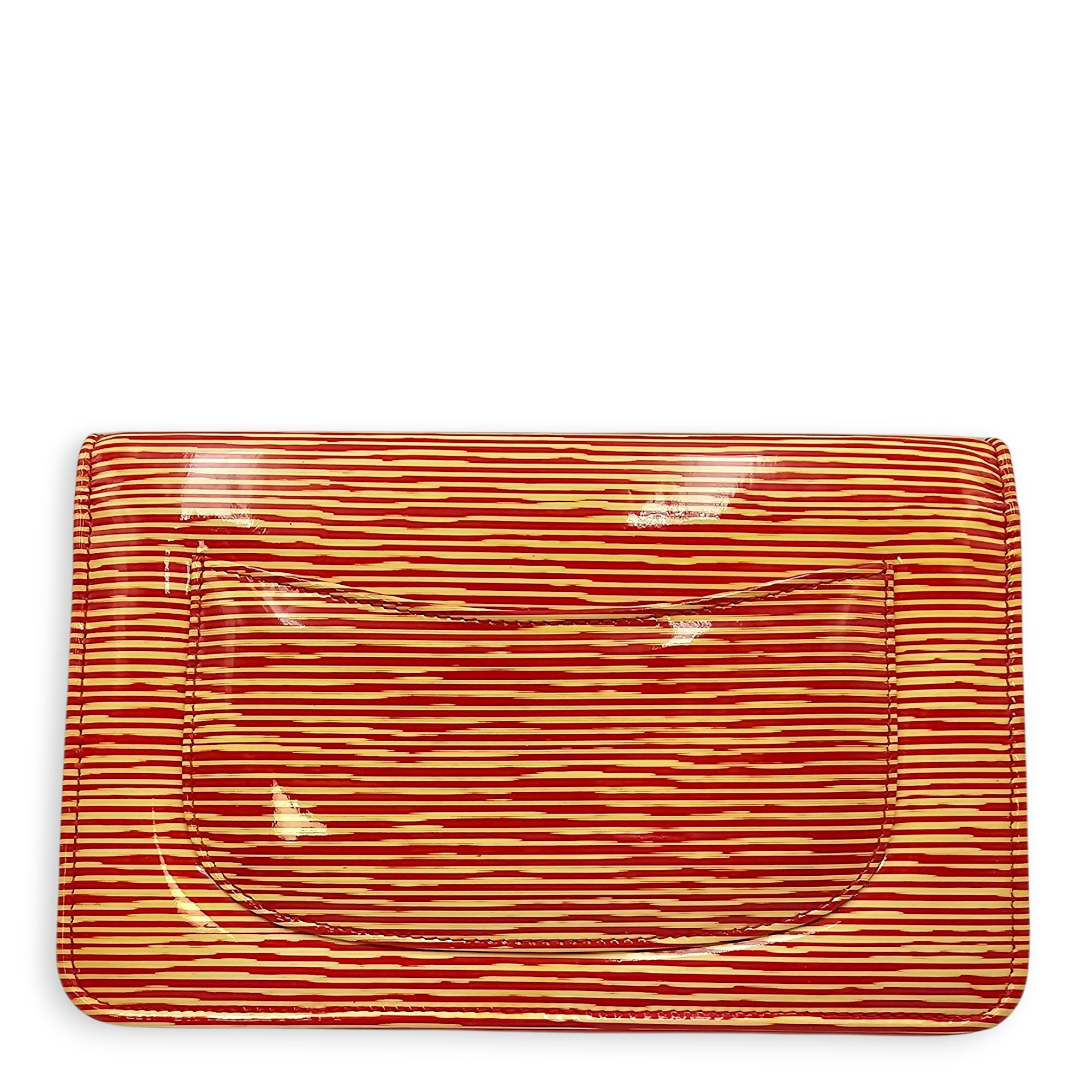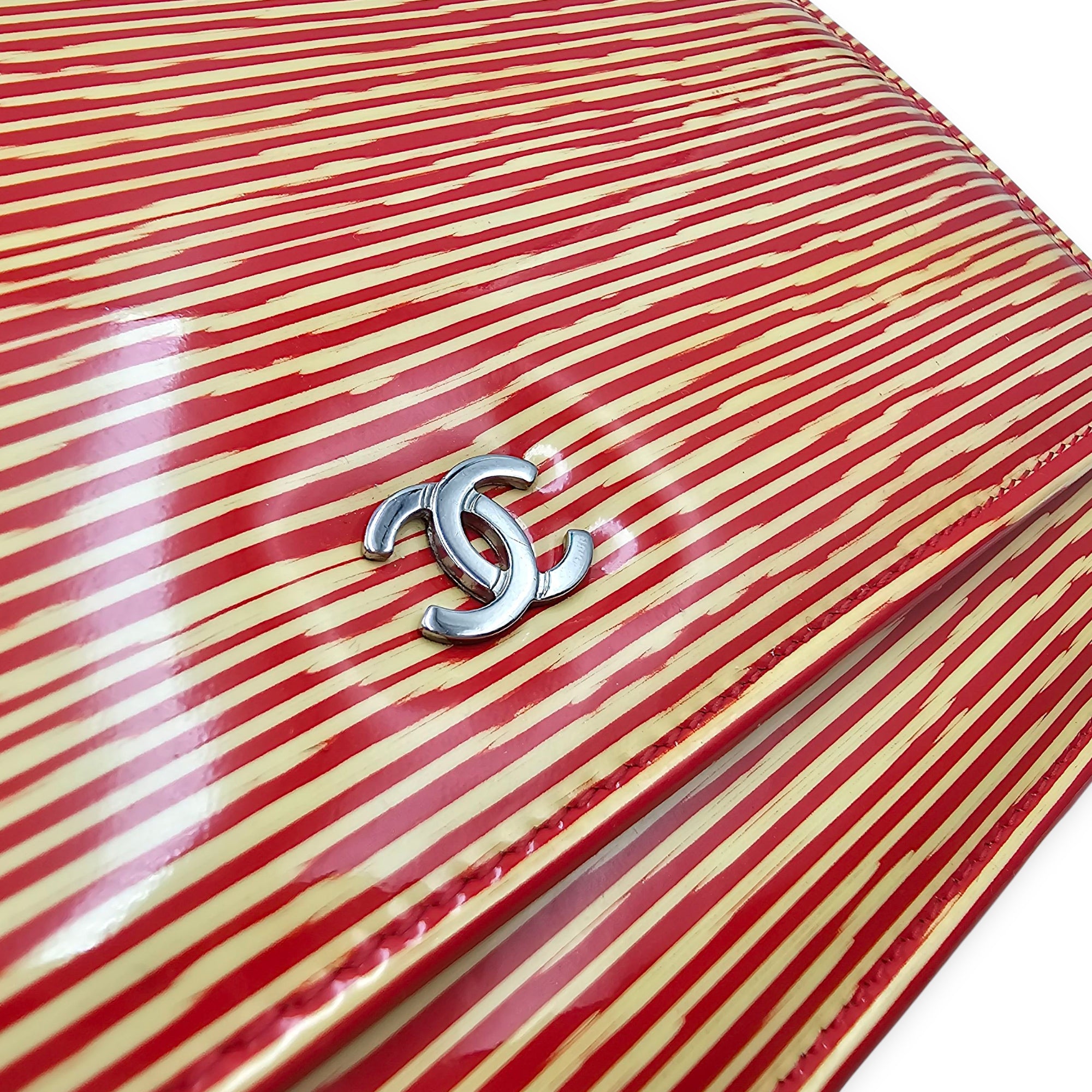 Limited Edition CC Orange Wallet on Chain in Patent Leather, Silver hardware