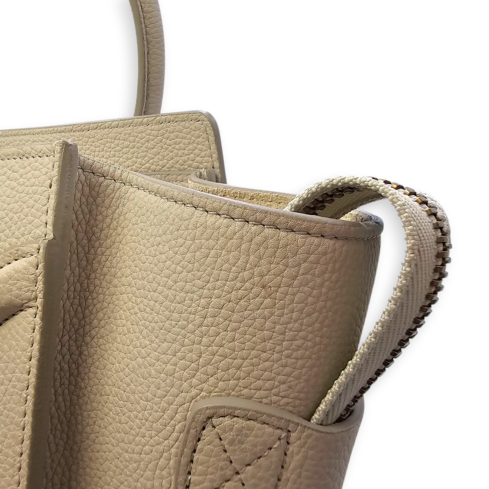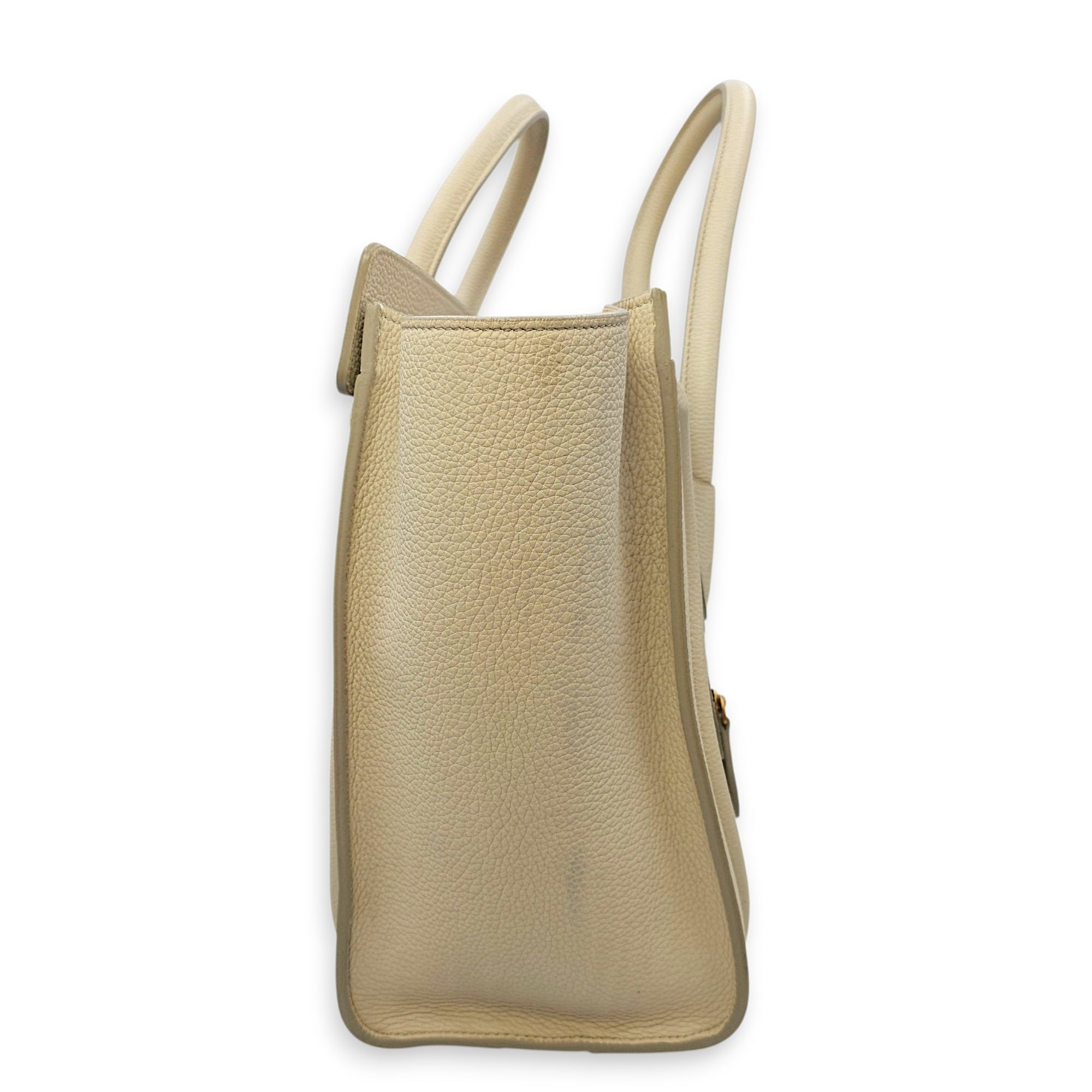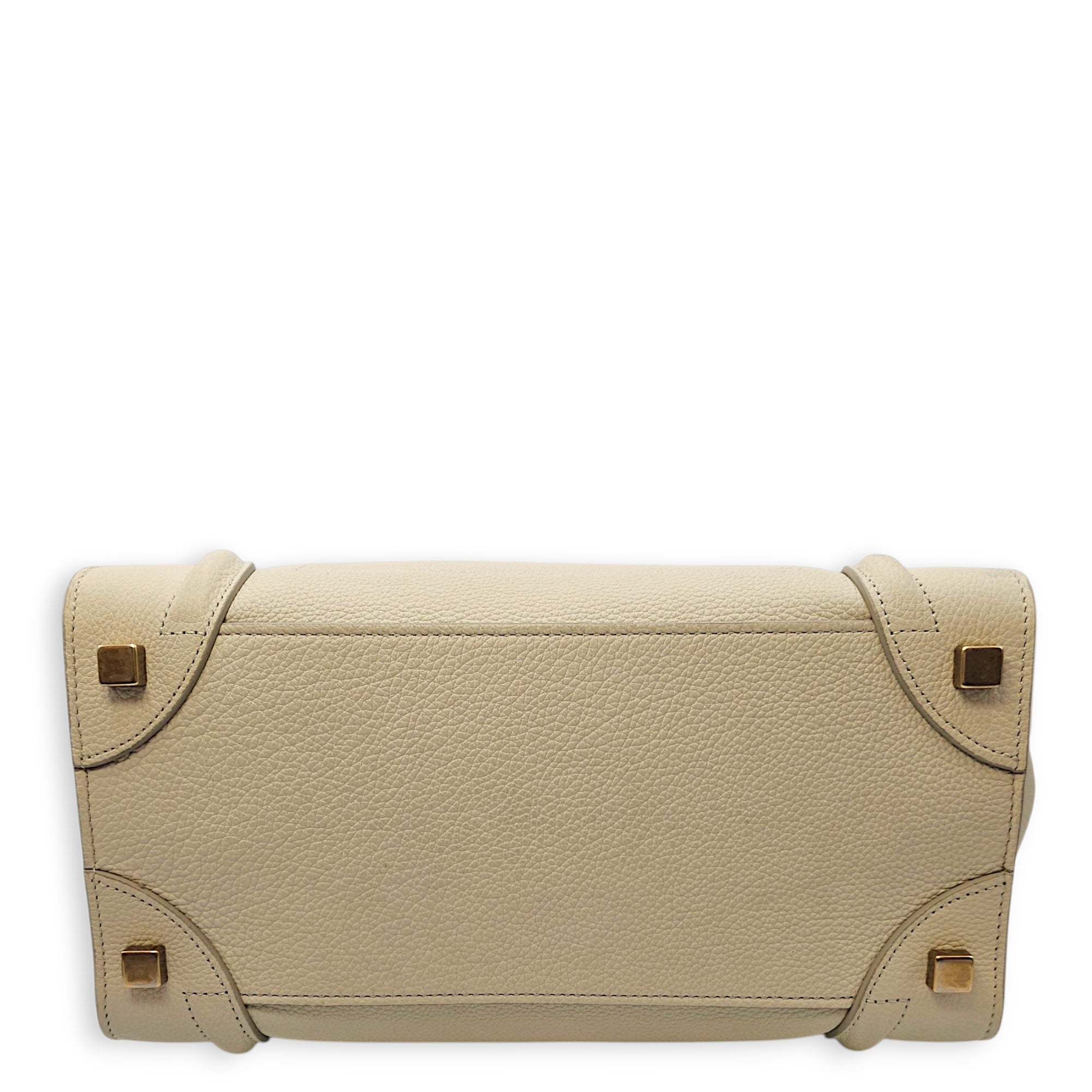 Micro Beige Luggage Bag in Calfskin, Gold hardware