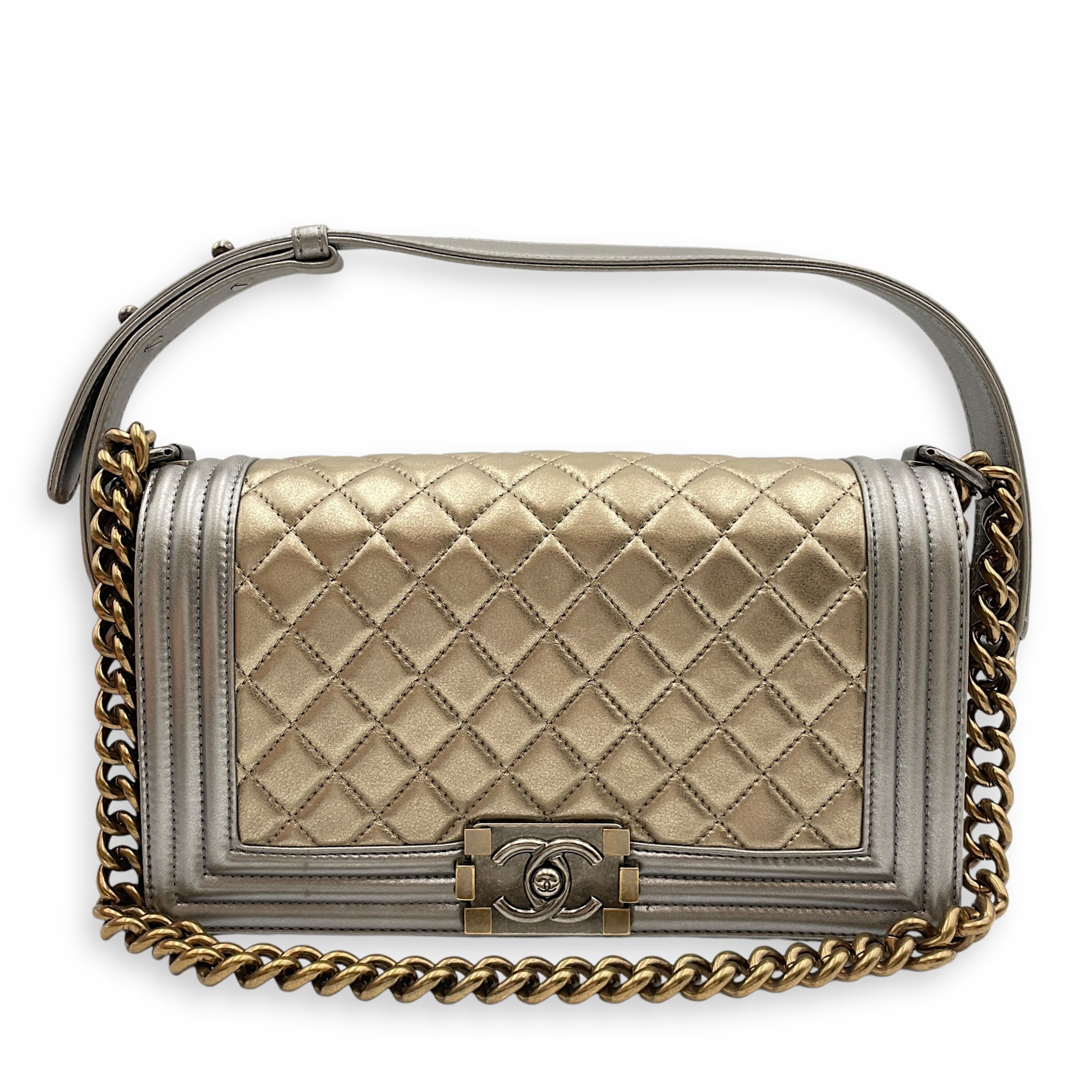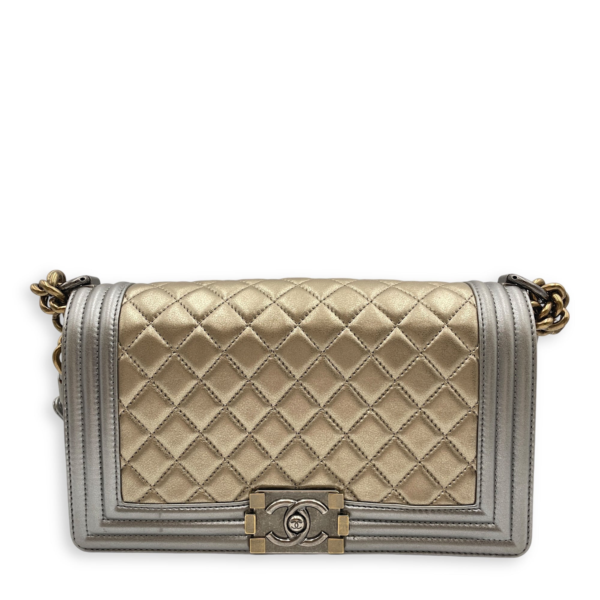 Quilted Boy (25cm) Medium Multi-colour Crossbody Bag in Lambskin, Ruthenium, antique gold hardware