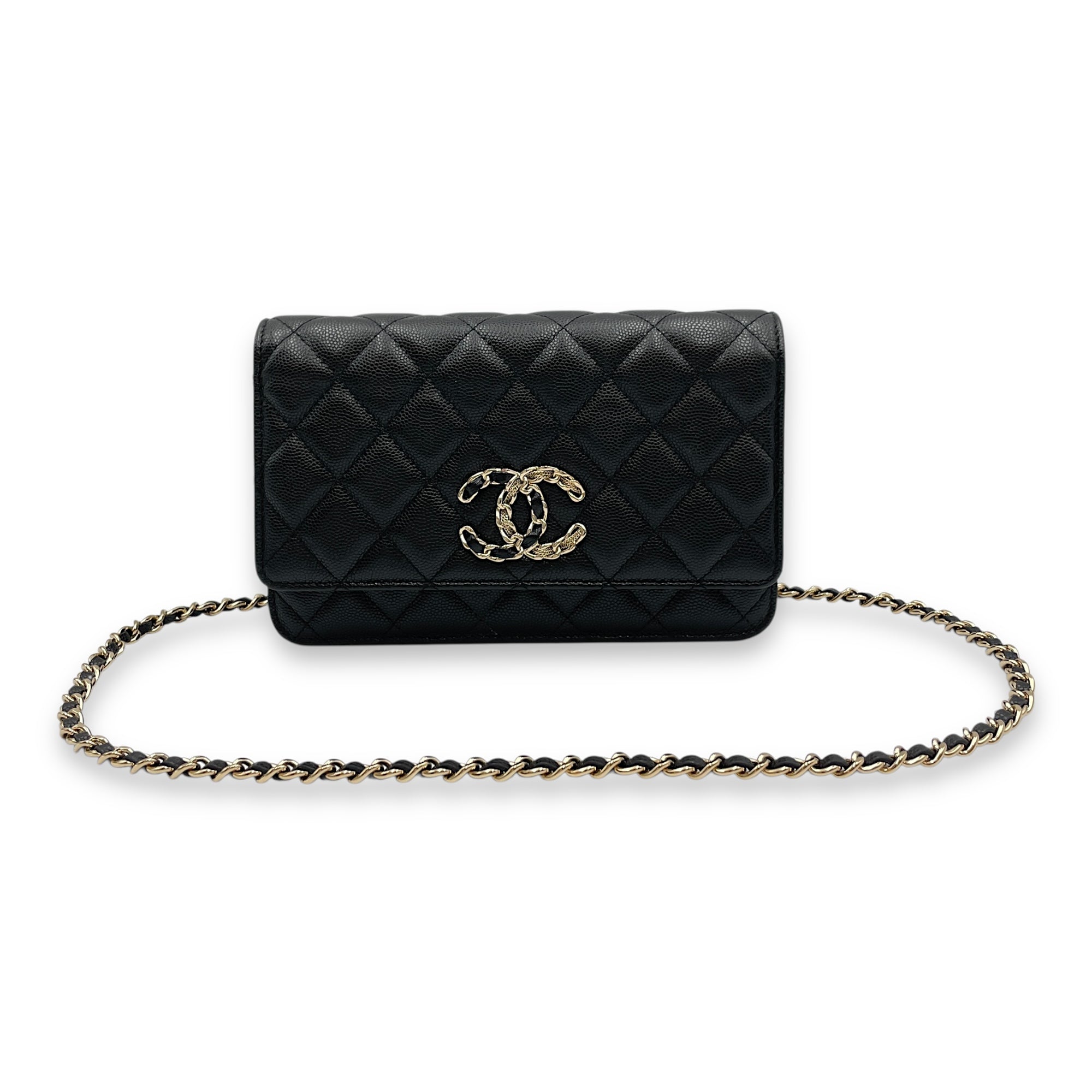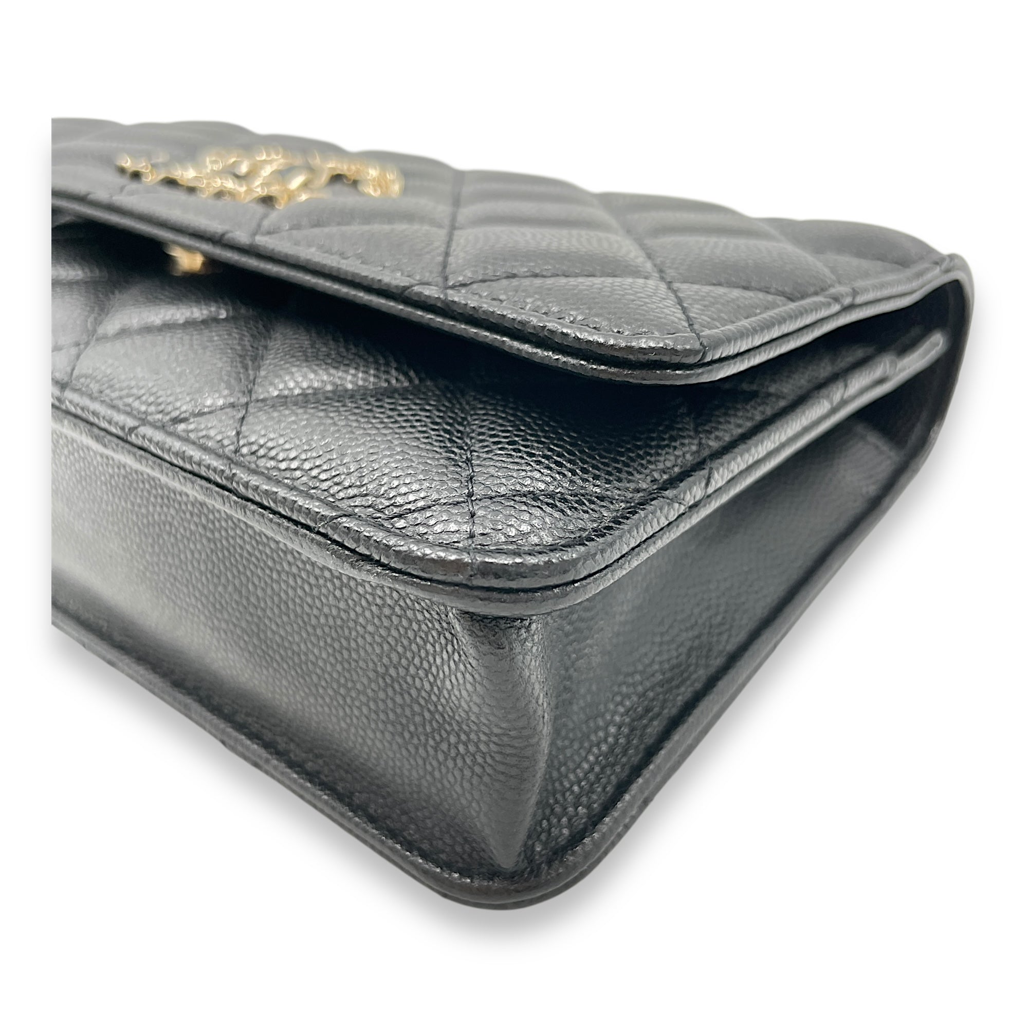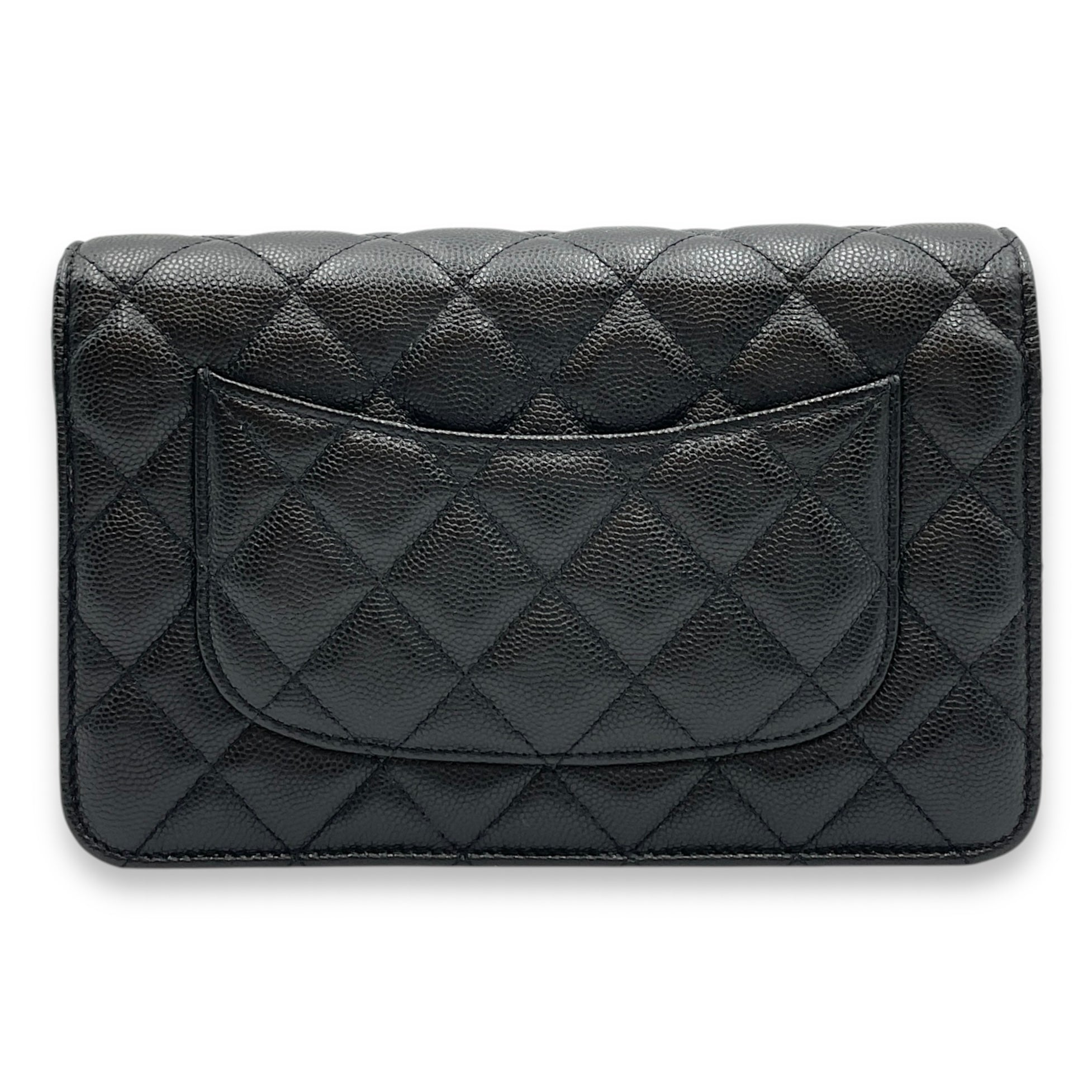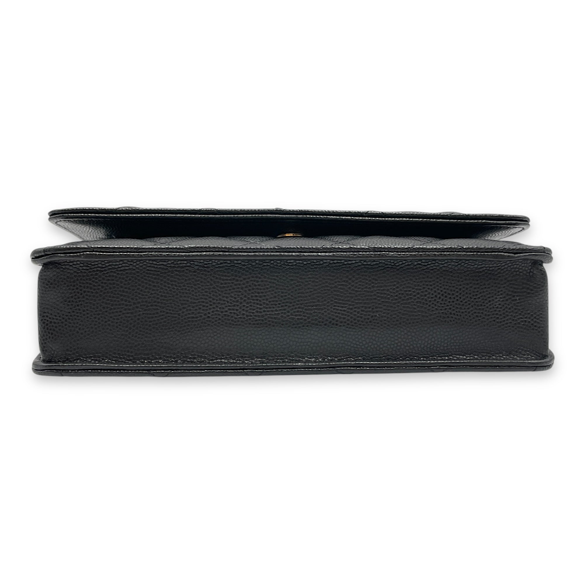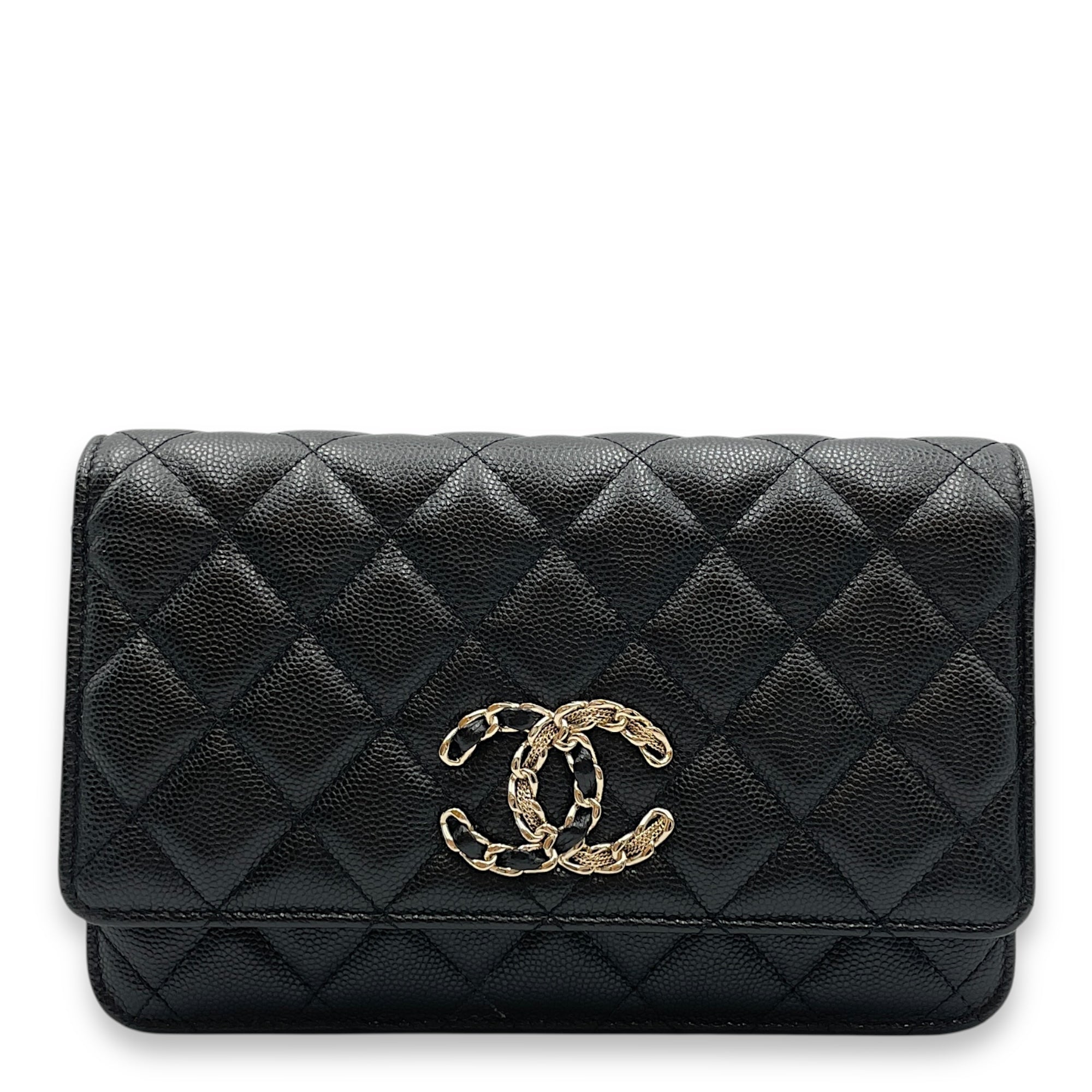 Quilted CC Black Wallet on Chain in Caviar Leather, Gold hardware