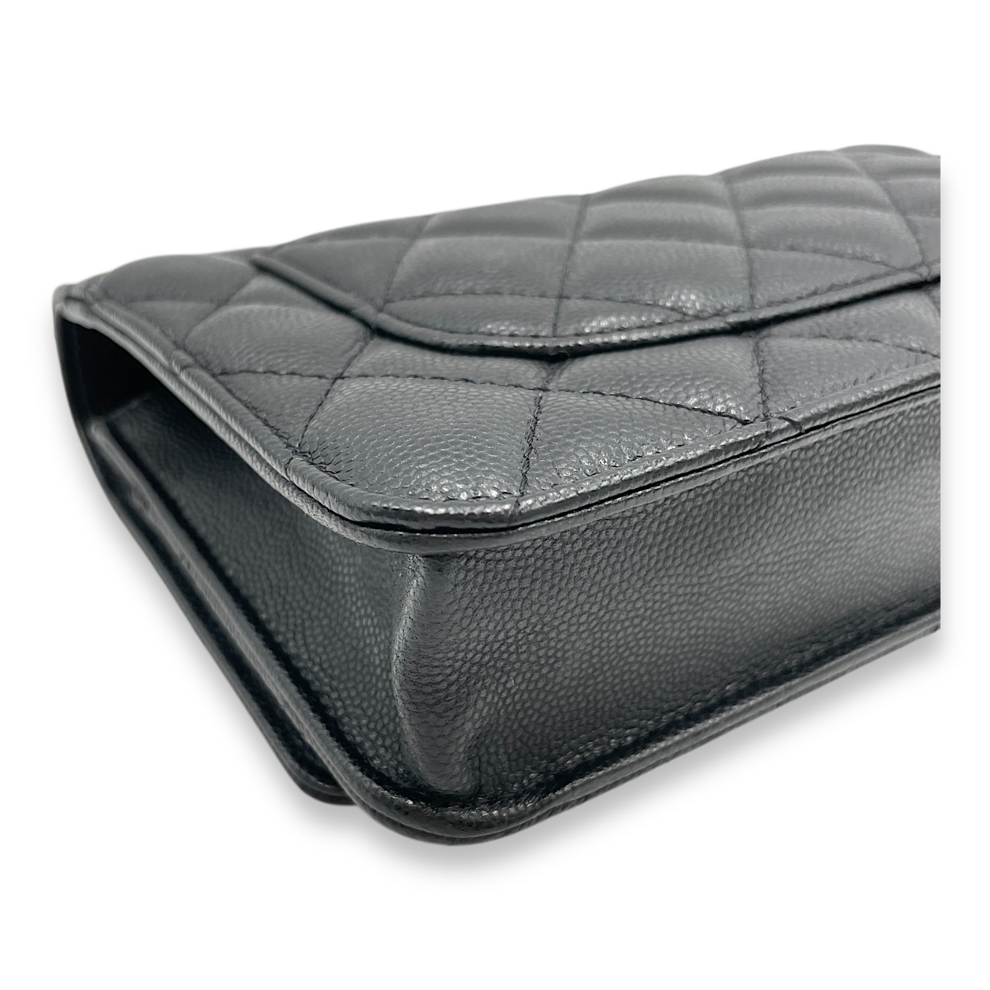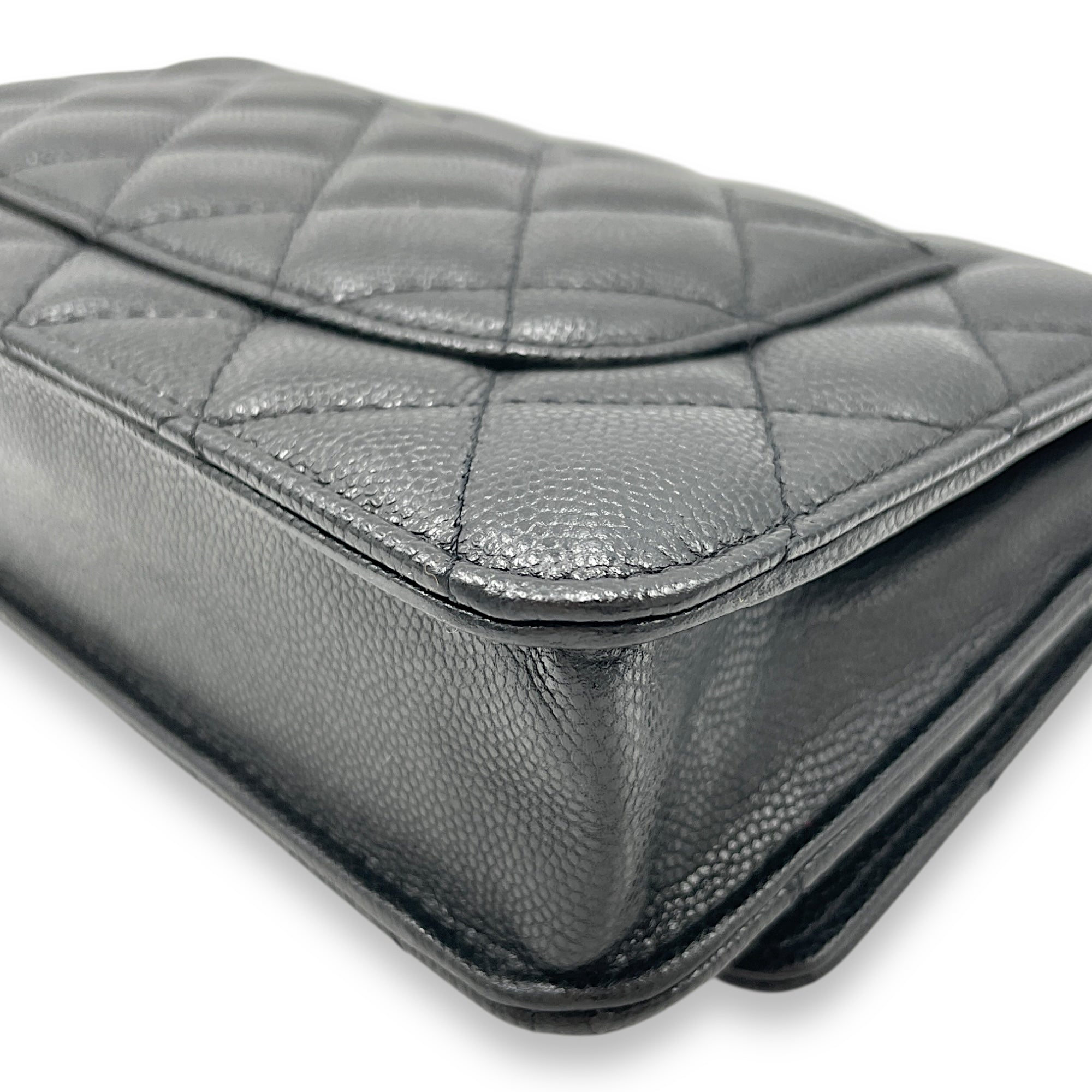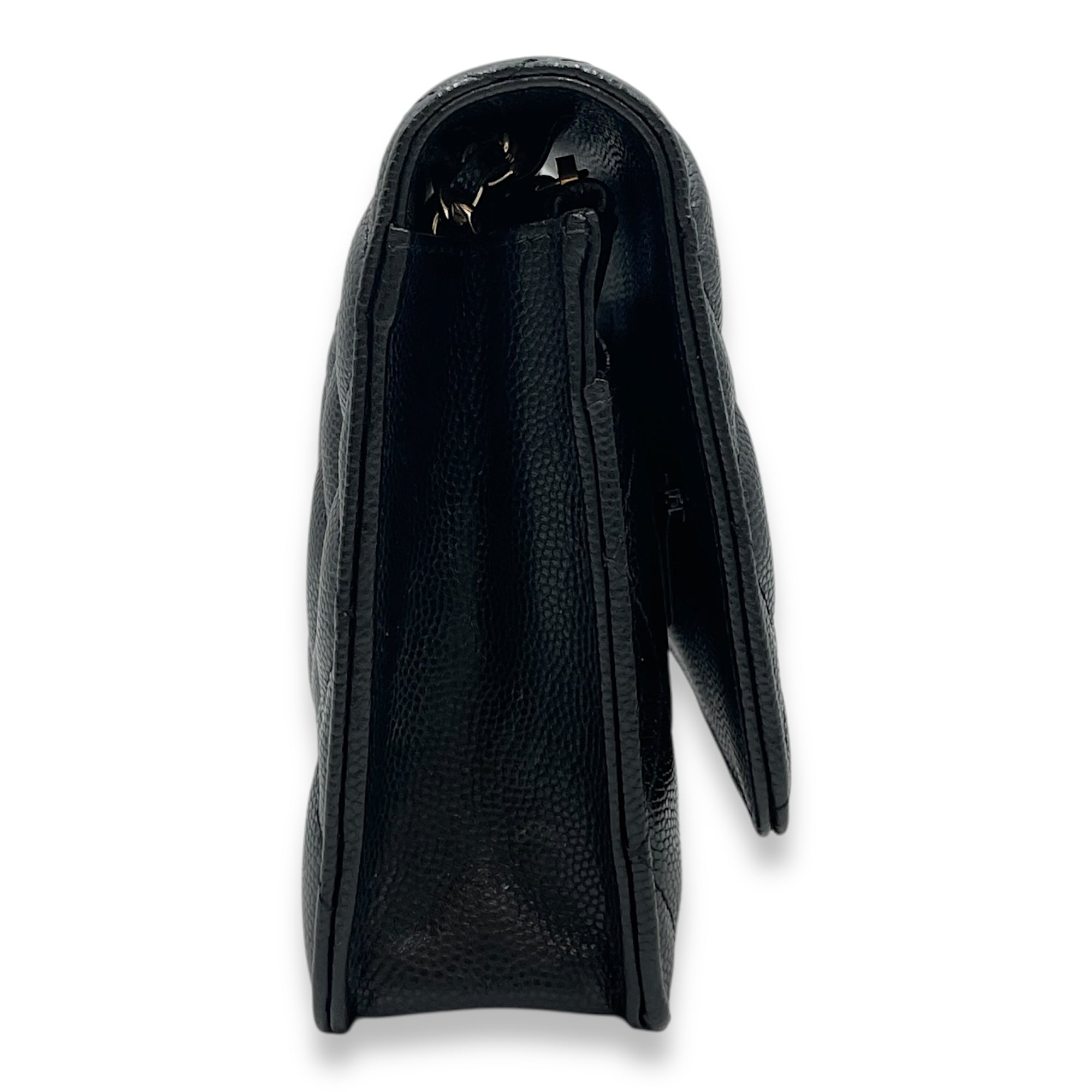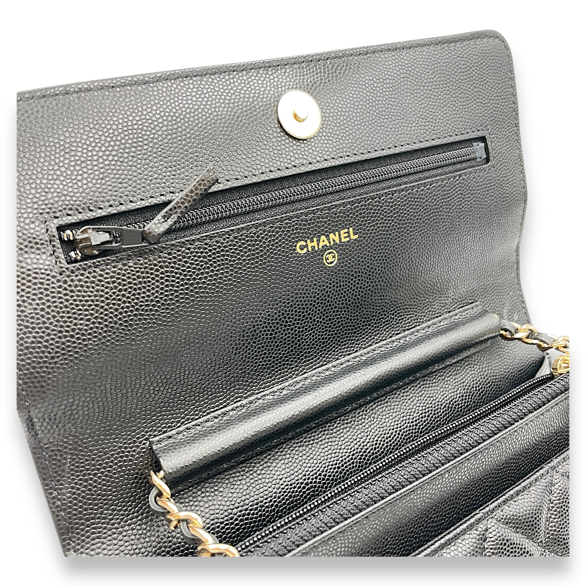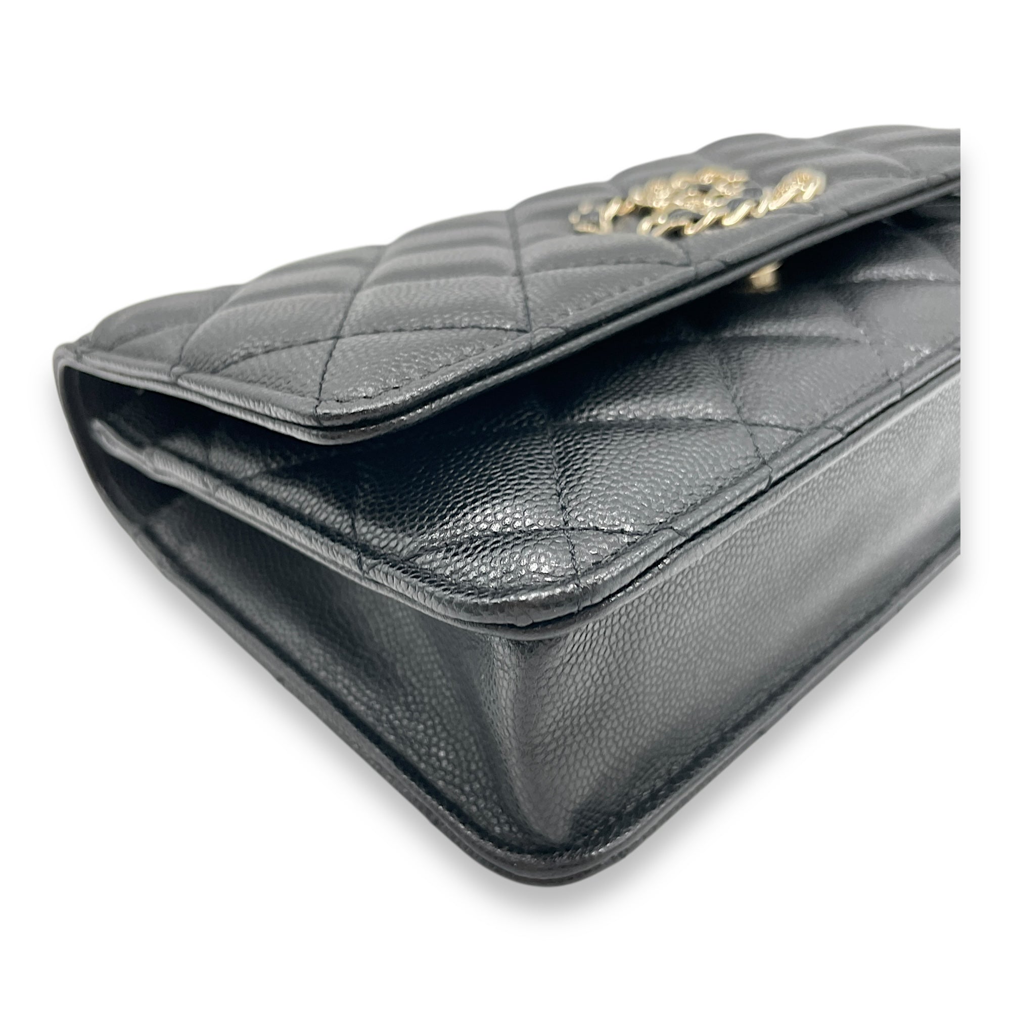 Quilted CC Black Wallet on Chain in Caviar Leather, Gold hardware