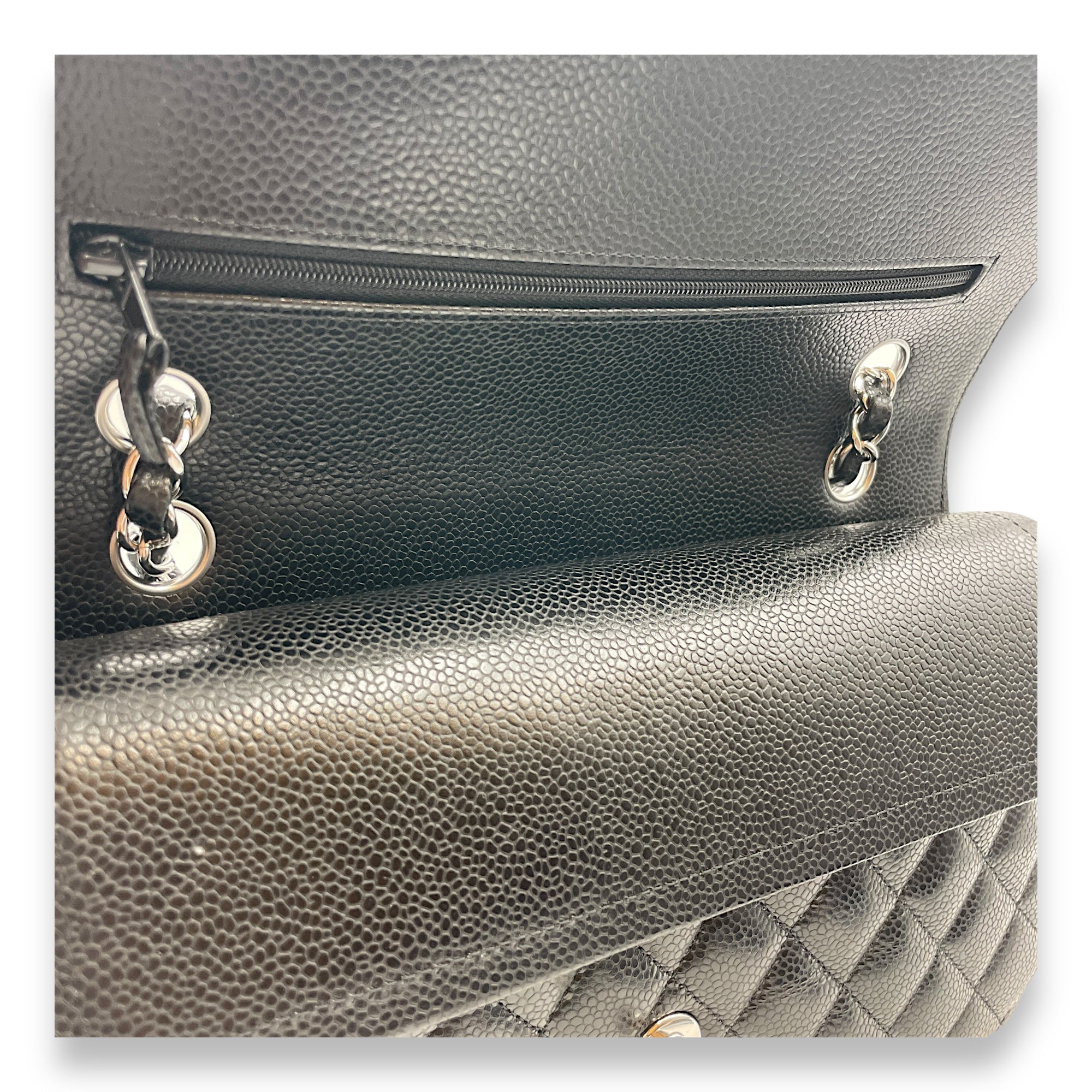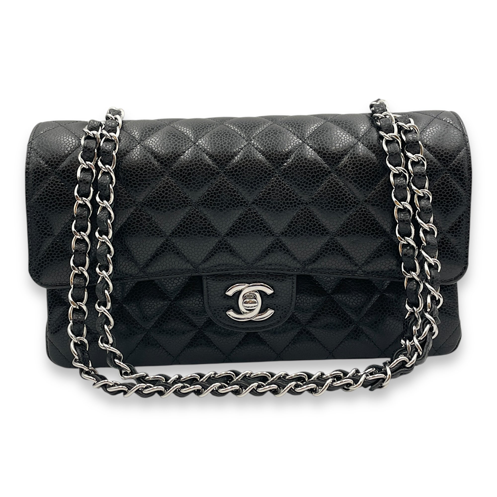 Be the first to review “Quilted CC Classic Medium Black Double Flap Bag in Caviar Leather, Silver hardware”