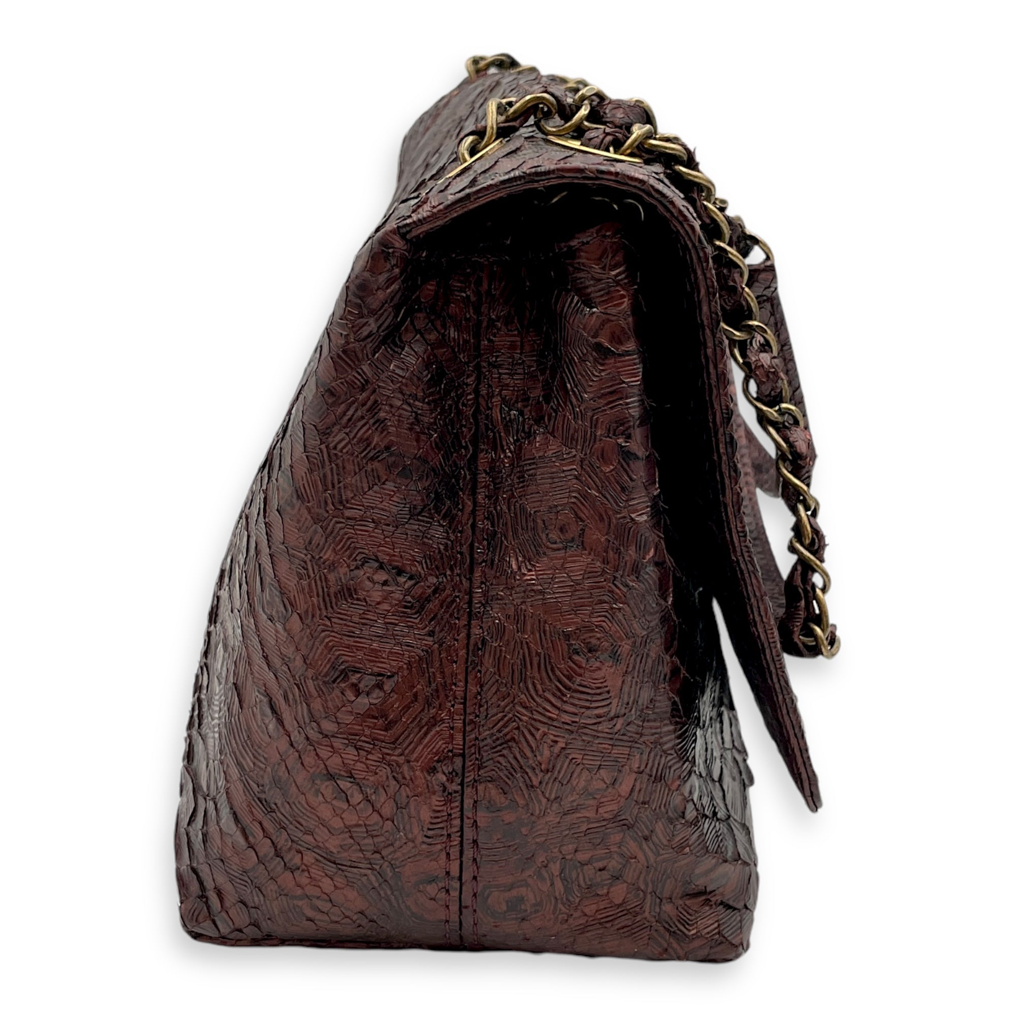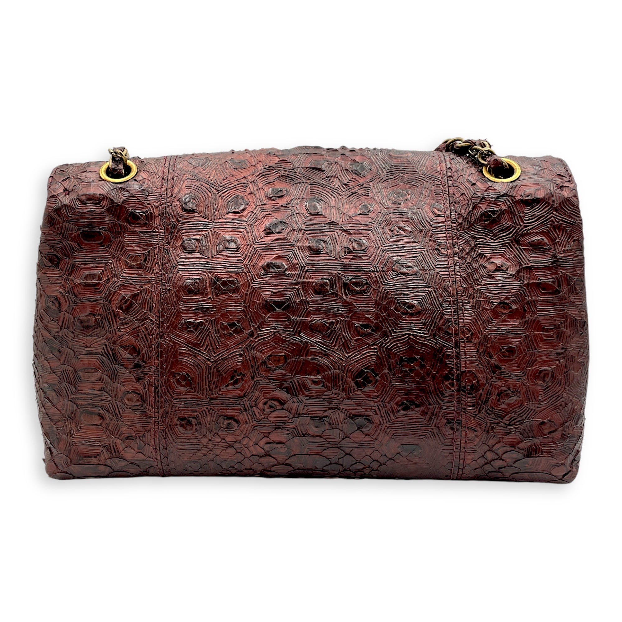 Seasonal Paris-Byzance Flap 29x18x12cm Burgundy Shoulder Bag in Python Leather, Gold hardware