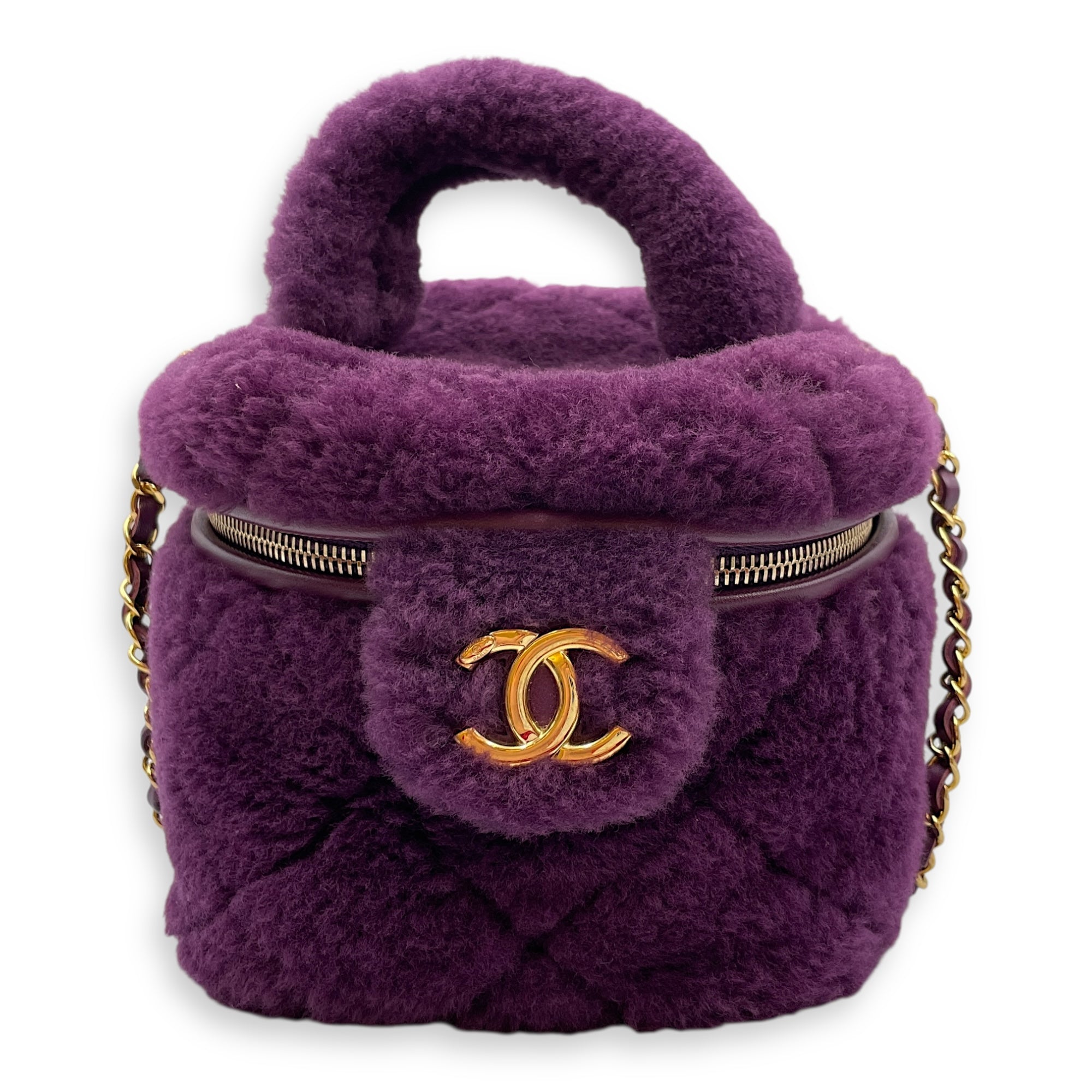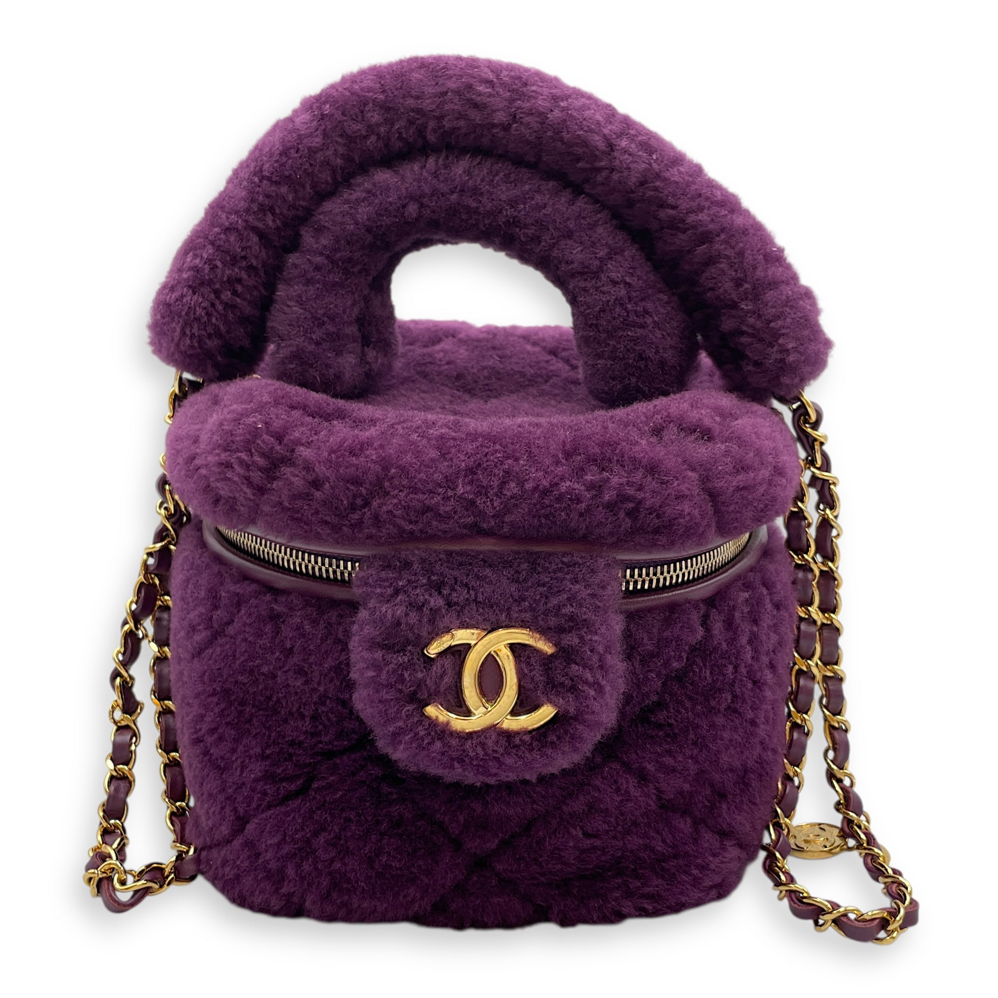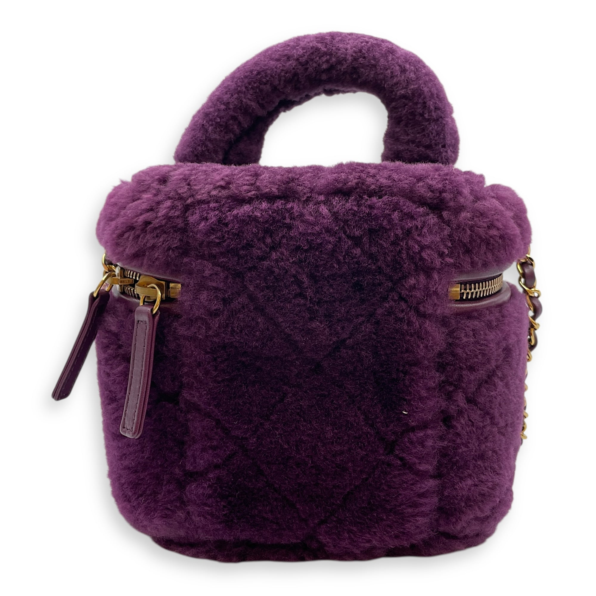 Shearling Quilted Vanity Purple Shoulder Bag in Lambskin, Gold hardware